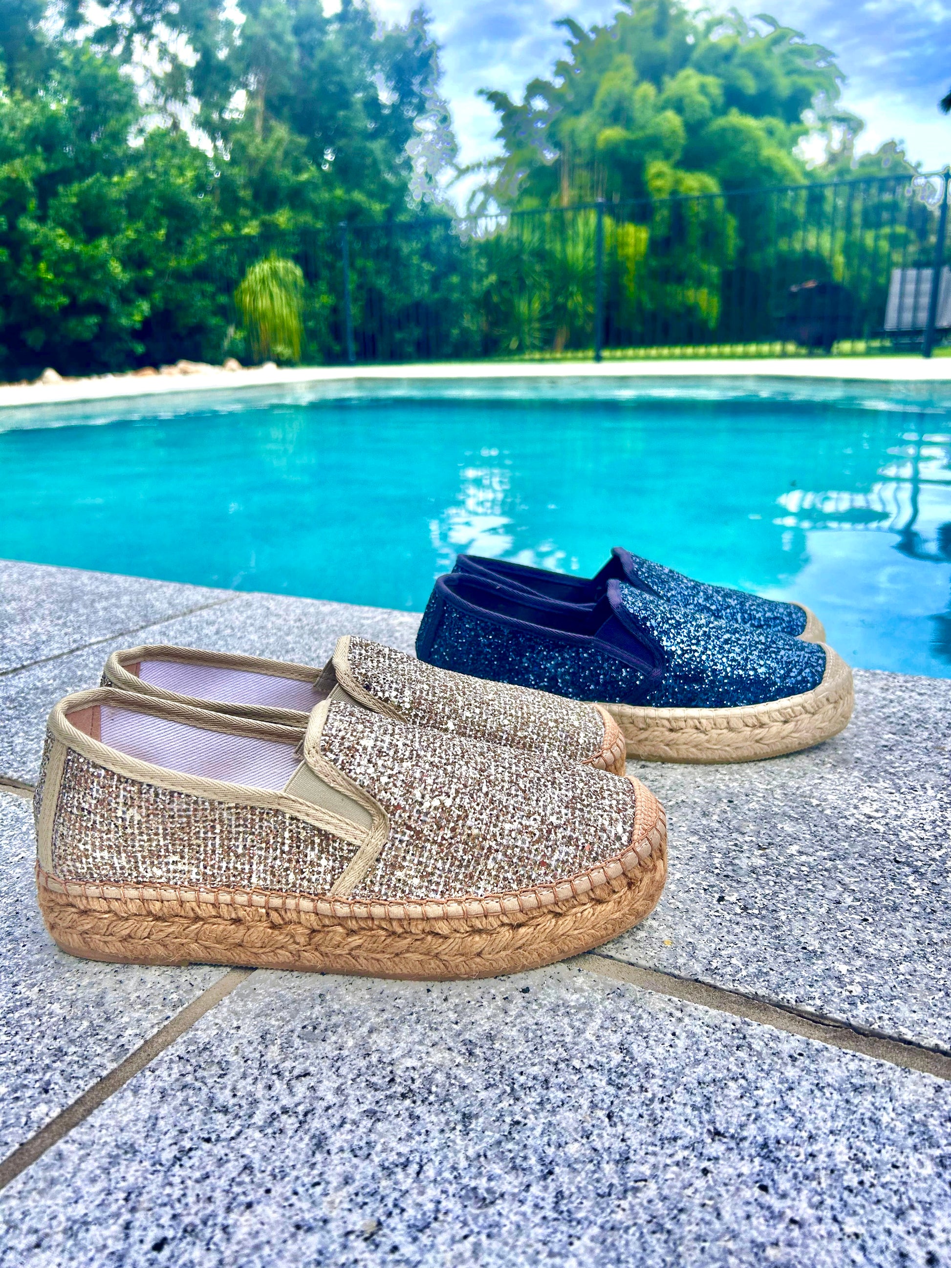 Step into style with our Vidoretta espadrilles! These stunning shoes, crafted in Spain, feature a chic navy or silver shimmer that’s perfect for all four seasons, they pair beautifully with resort wear, linens, denims, and almost everything in between.