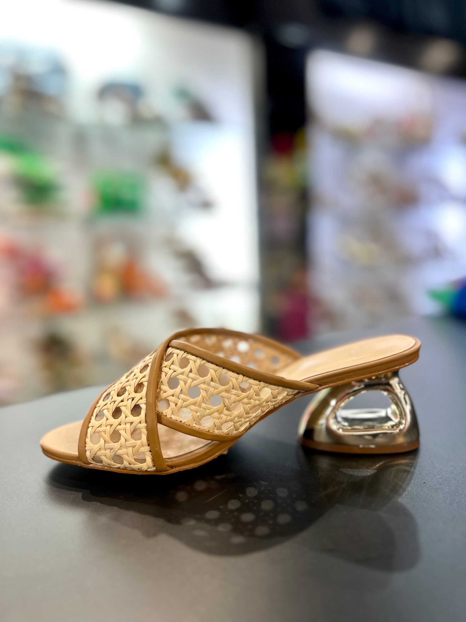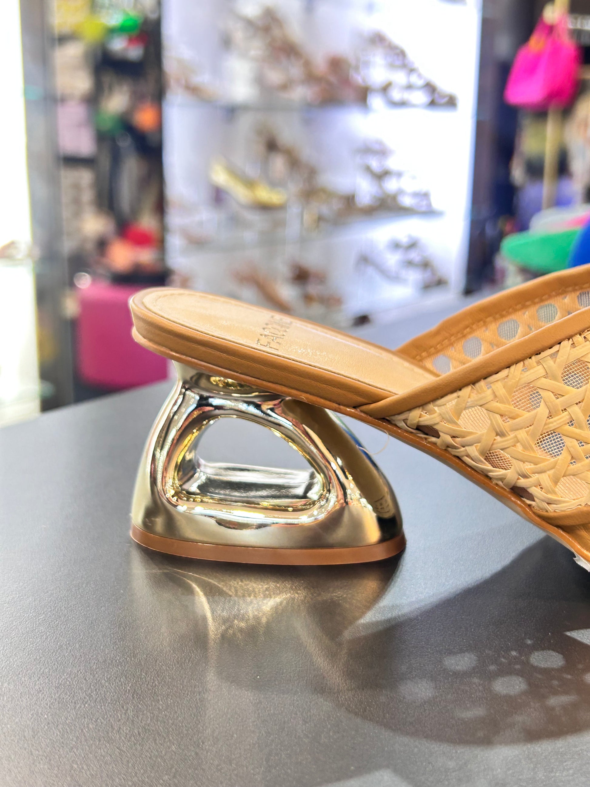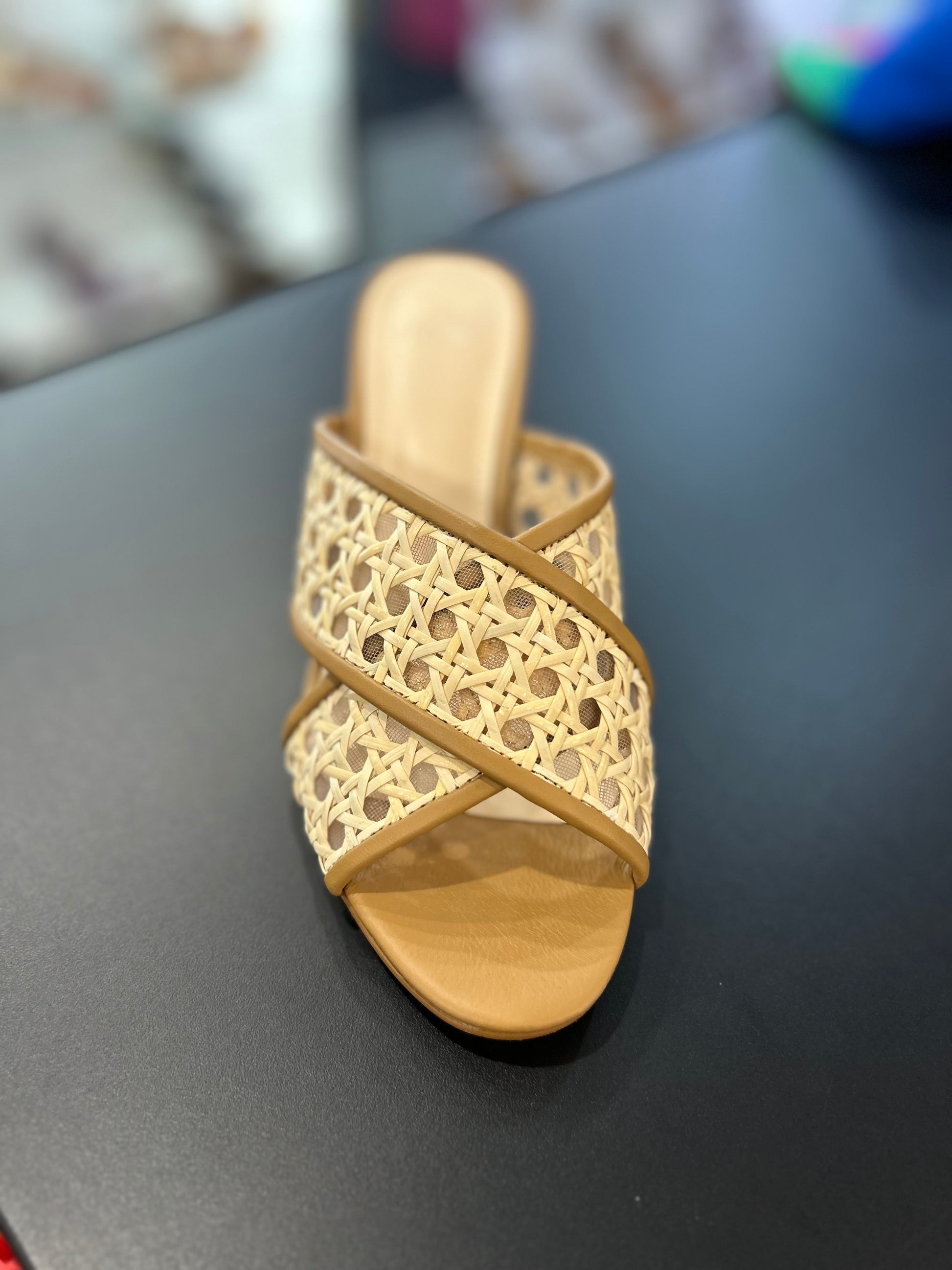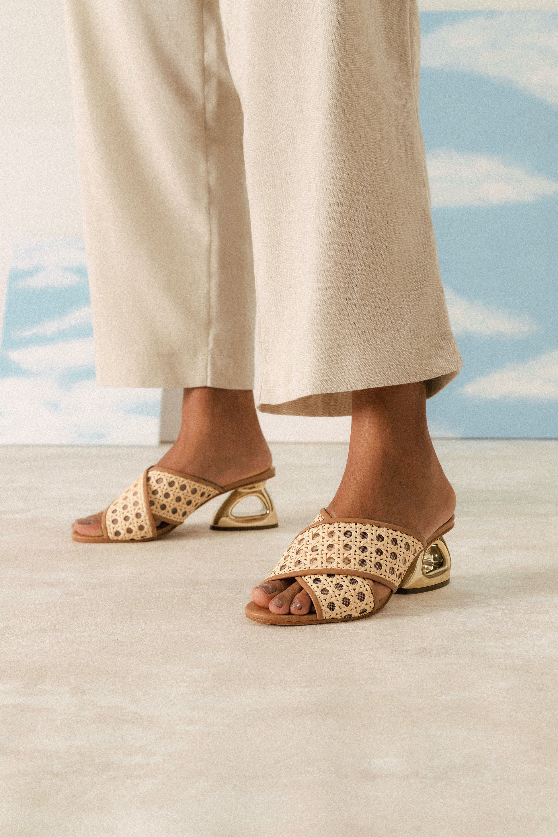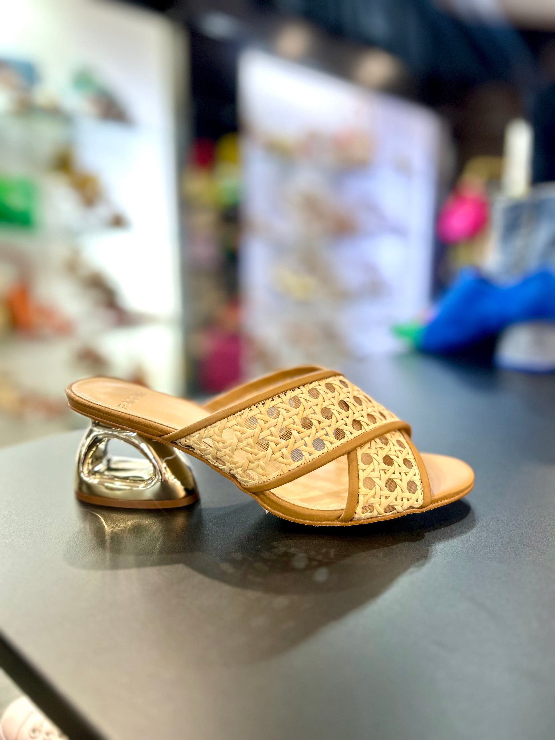 The Faccine slide from Brazil is something truly special. With its statement gold heel, mesh and cane crossover straps highlighted in caramel leather, this 6.5cm beauty flatters the foot and adds instant polish. Fresh, sophisticated and a design you’re not going to see everywhere – it’s definatley a standout for the season.