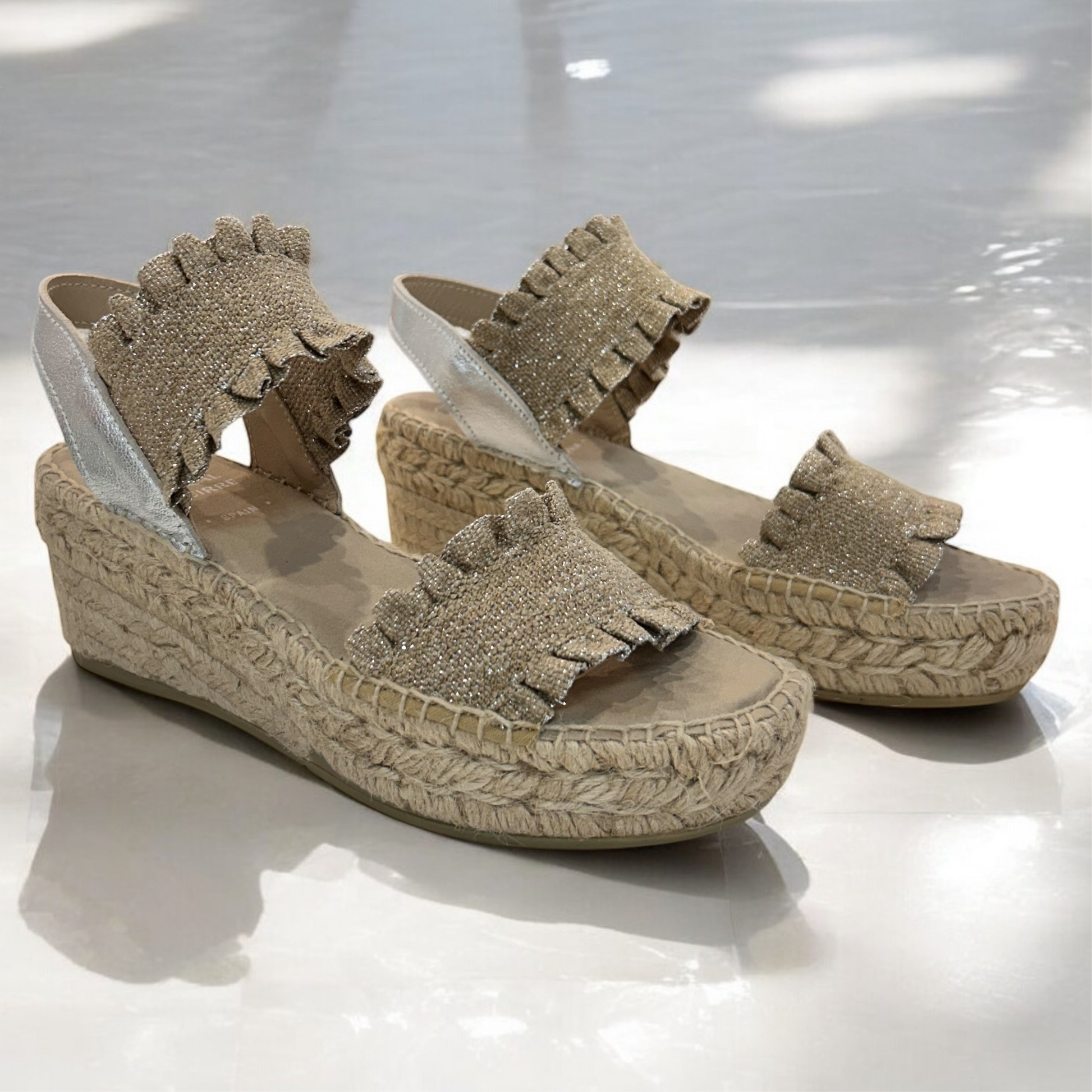 Meet 2245, the espadrille that brings height, comfort and style together in one gorgeous sandal. With a 7cm wedge and 4cm platform, you’ll feel lifted without losing that easy all-day wear. The soft, breathable microfiber insole adds cloud-like comfort, while the playful ruffle bands – one with stretch – ensure a perfect fit no matter your foot shape.