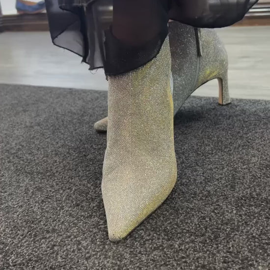 Imagine slipping into a stunning heeled boot that shimmers in gold and silver, transforming with every angle of light like a captivating chameleon. This spectacular piece is event-ready and party-perfect, ensuring all eyes are on you. Elevate your look with this dazzling boot from NEO, Spain—it's a showstopper you won't want to miss!