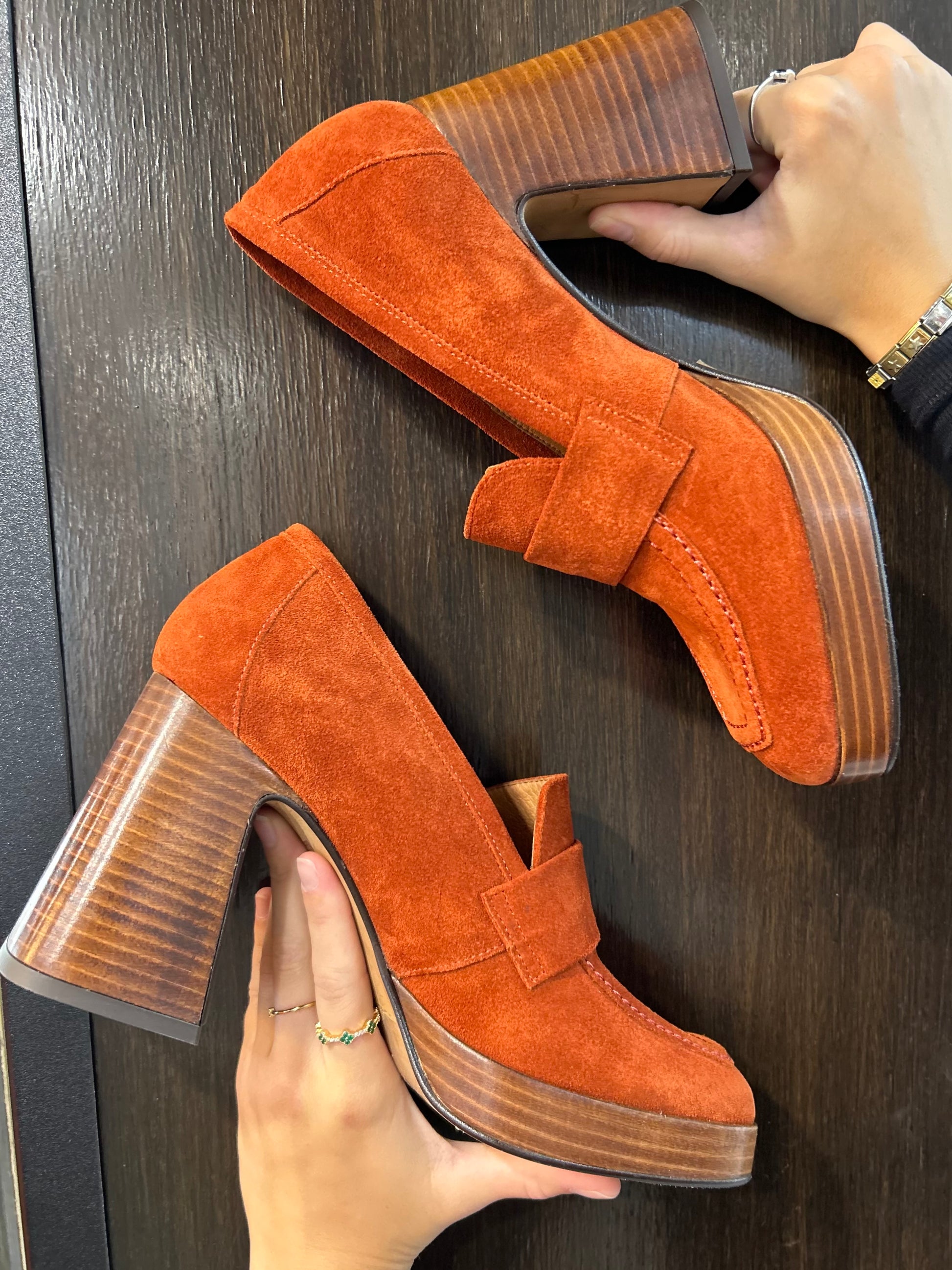 Step into the ultimate retro vibe with these fab platforms in a gorgeous terracotta suede, made in Spain. With a 9cm splayed platform, they bring all the 70’s flair you need—totally on trend right now. Perfect for adding a bold, throwback touch to your look, these platforms are a must-have for those who love style with serious height. Whether you're hitting up brunch or a night out, these shoes are the perfect statement piece. Get ready to turn heads!