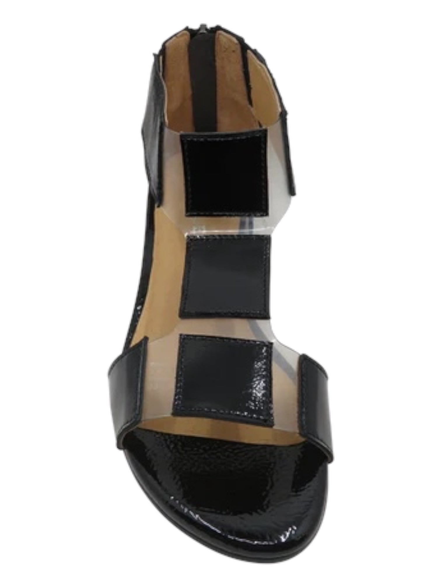 - This classy black basic is a wardrobe warrior, fit with a unique patent leather design at the in-step. The low heel of the Bresley Abbie sandal proves to be a comfortable height, appropiate for your casual or dressy summer events.
