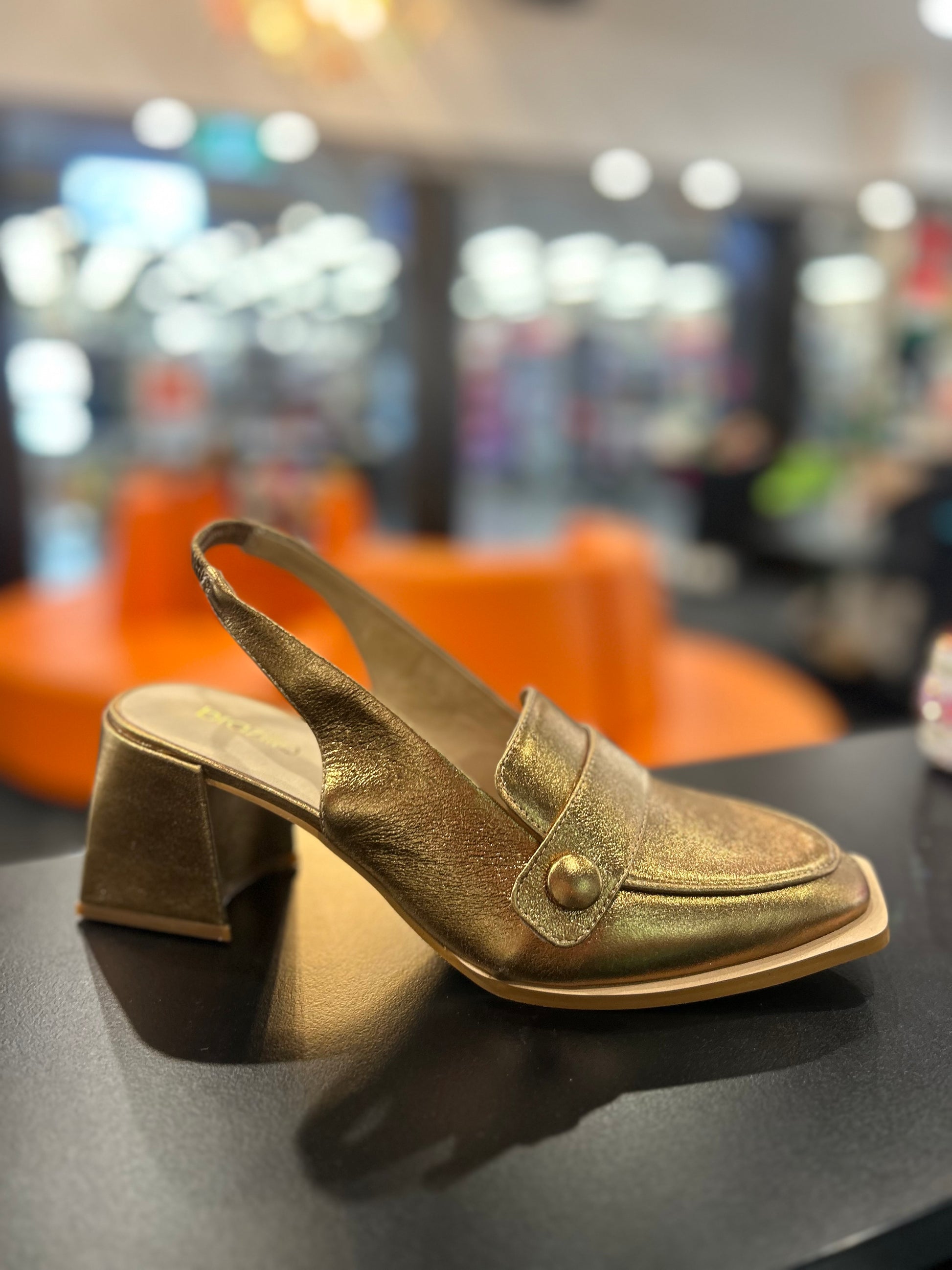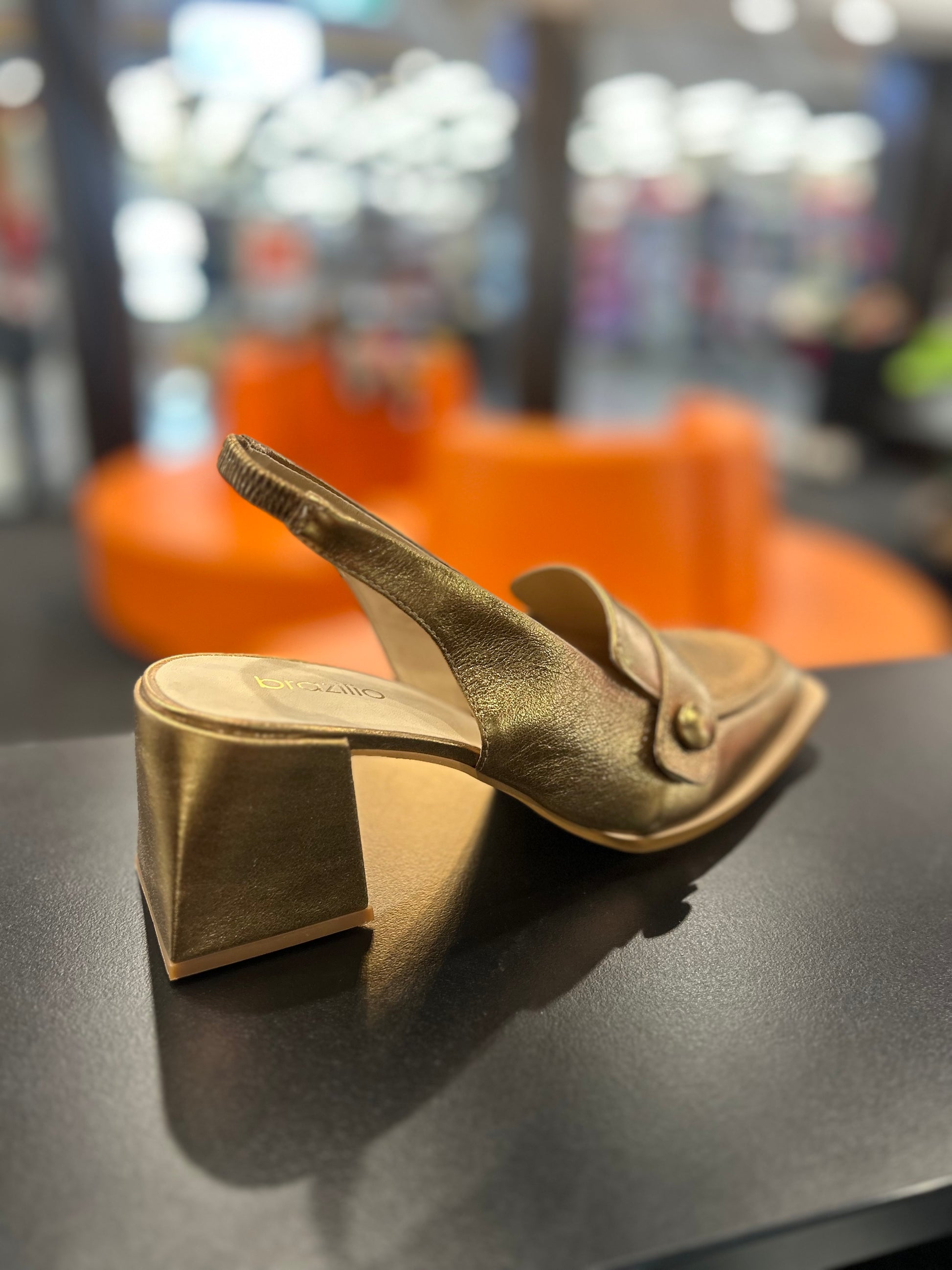 Step into elegance with this stunning Brazilian-made shoe, crafted for both style and comfort. The rich bronze hue adds a touch of sophistication, while the innovative splayed heel design ensures lasting support and stability. Featuring an easy-to-wear slingback closure, this shoe combines effortless elegance with everyday practicality. The extended veneer chisel toe completes the look, offering a modern, sharp silhouette. Perfect for both formal occasions and elevated everyday wear, this shoe is a must-have for those who appreciate timeless design and impeccable comfort.