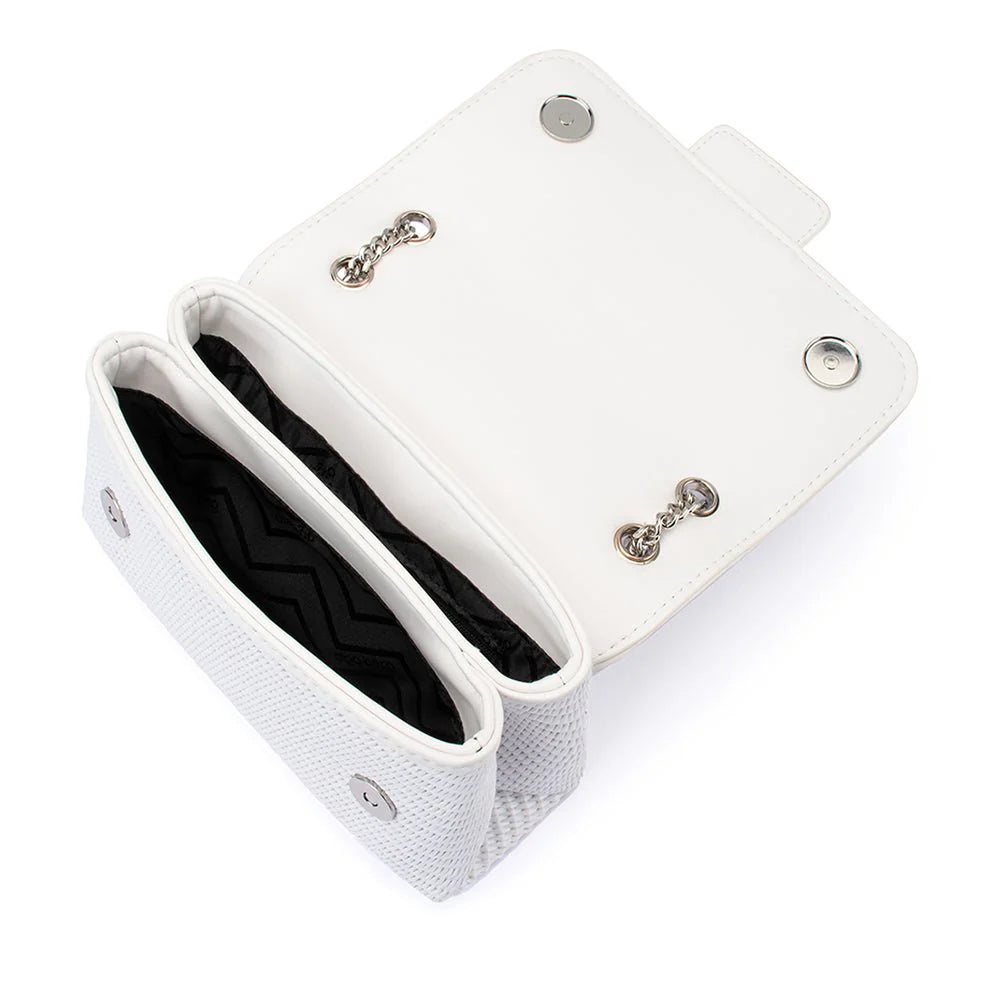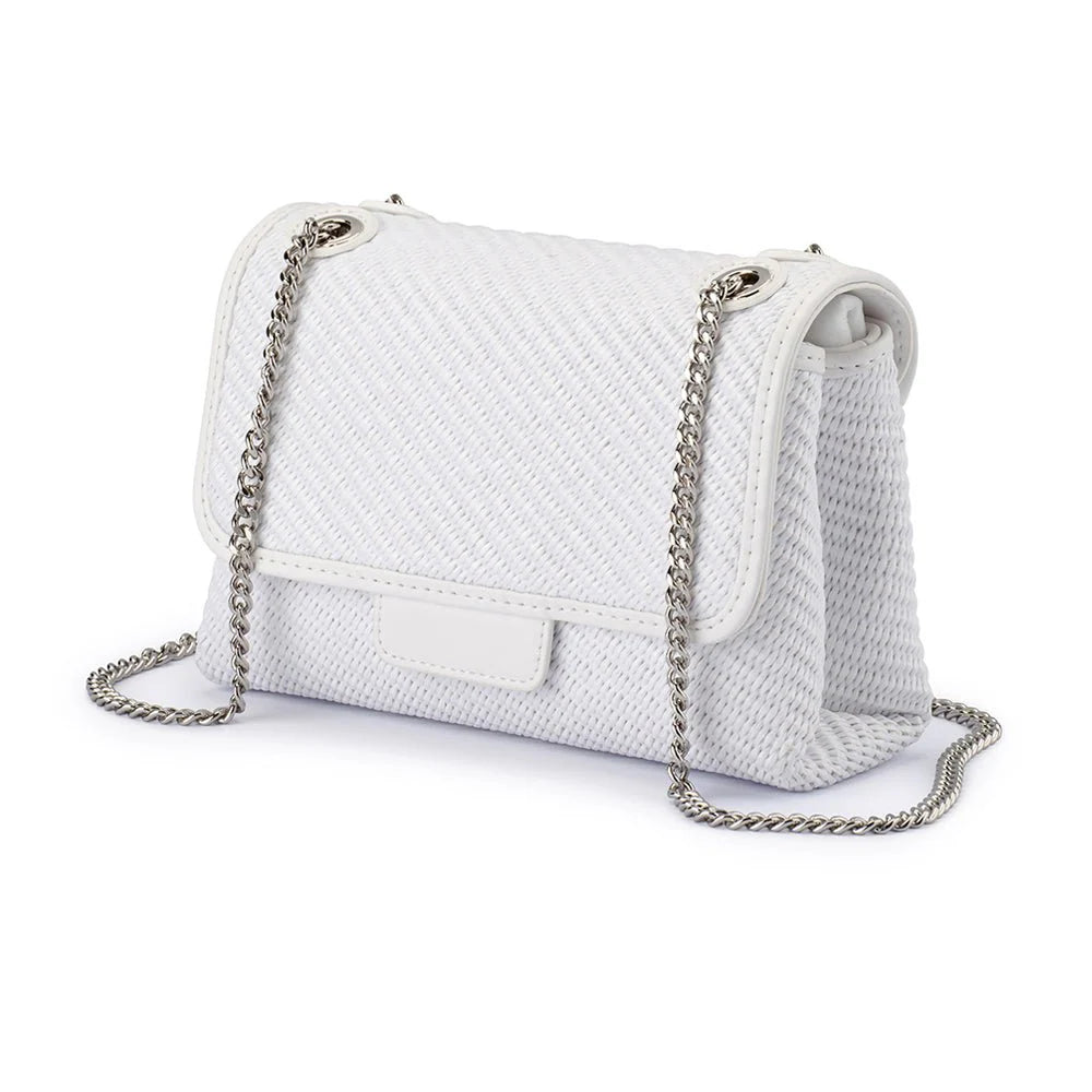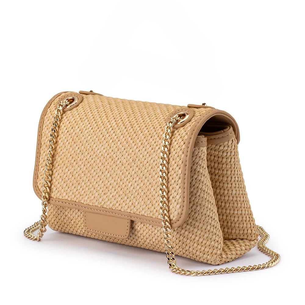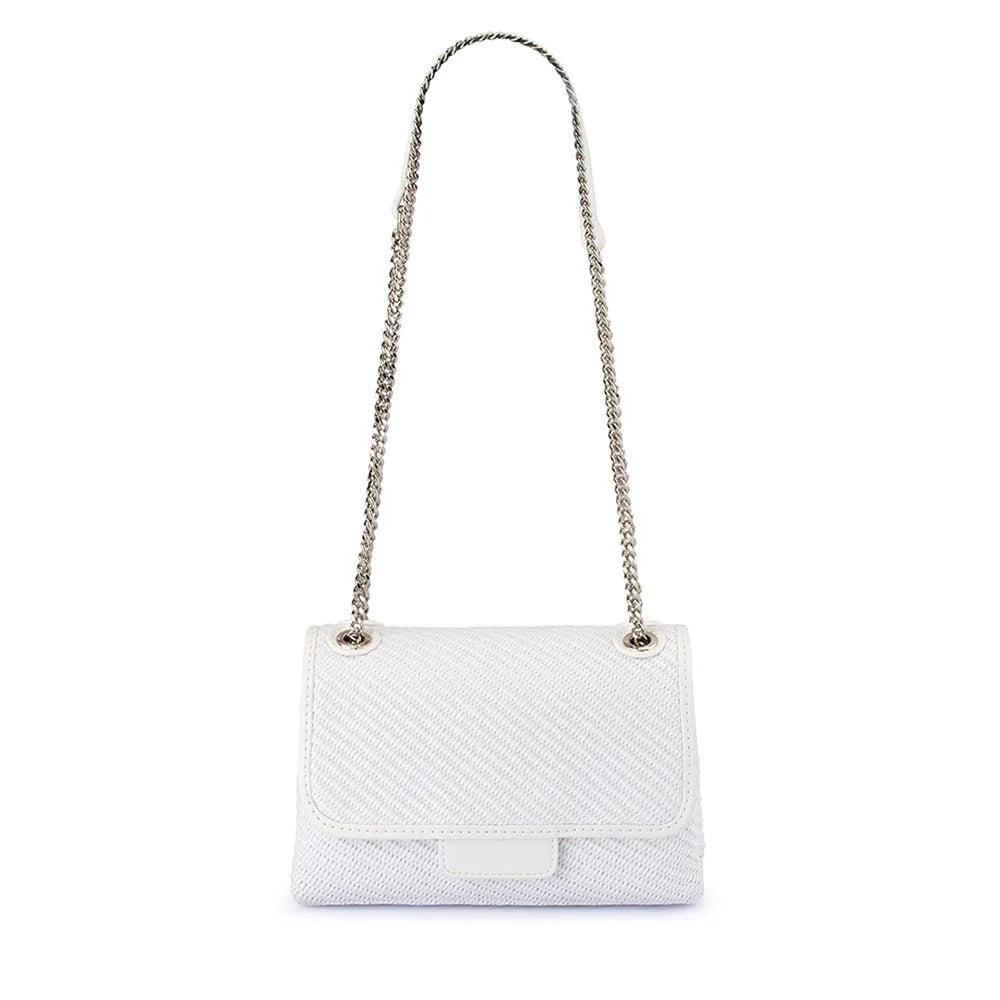 The ALEXA Woven Shoulder bag is a fun, easy to use summery style that can be worn as a crossbody bag, or double up the chain strap to wear as a shoulder bag. Easily fits a large smartphone, sunglasses and keys with room to spare for the rest of your event essentials.