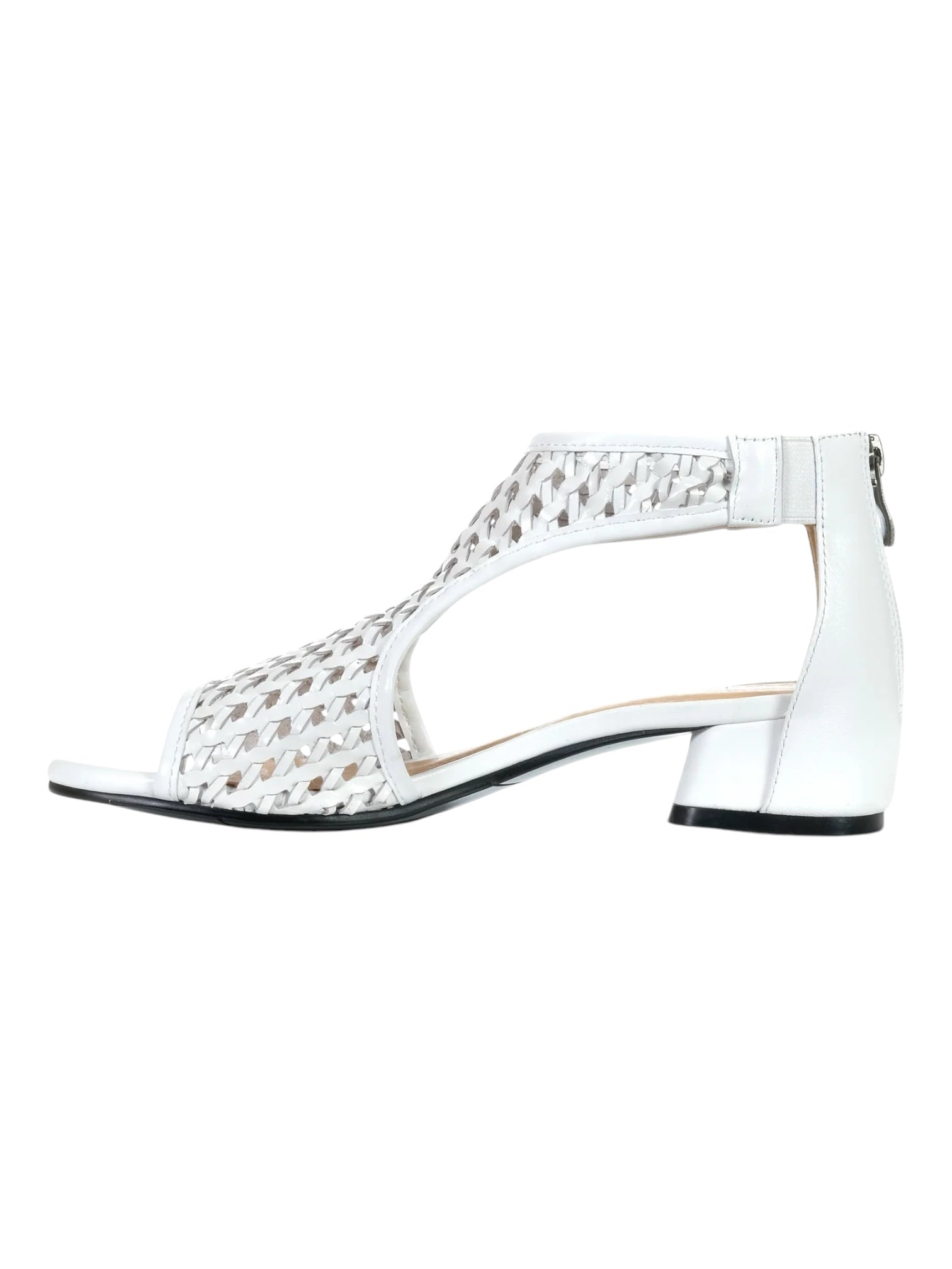 The Bresley Angler heel, designed for comfortaibility and style, is a summer must-have. Featured with a intertwined woven leather upper and conservative elasticised gussets at the heel, Angler ensures a snug, pleasant fit. Including a covered small block heel for added stability, the rear zip of the shoe additionally provides easy entry.