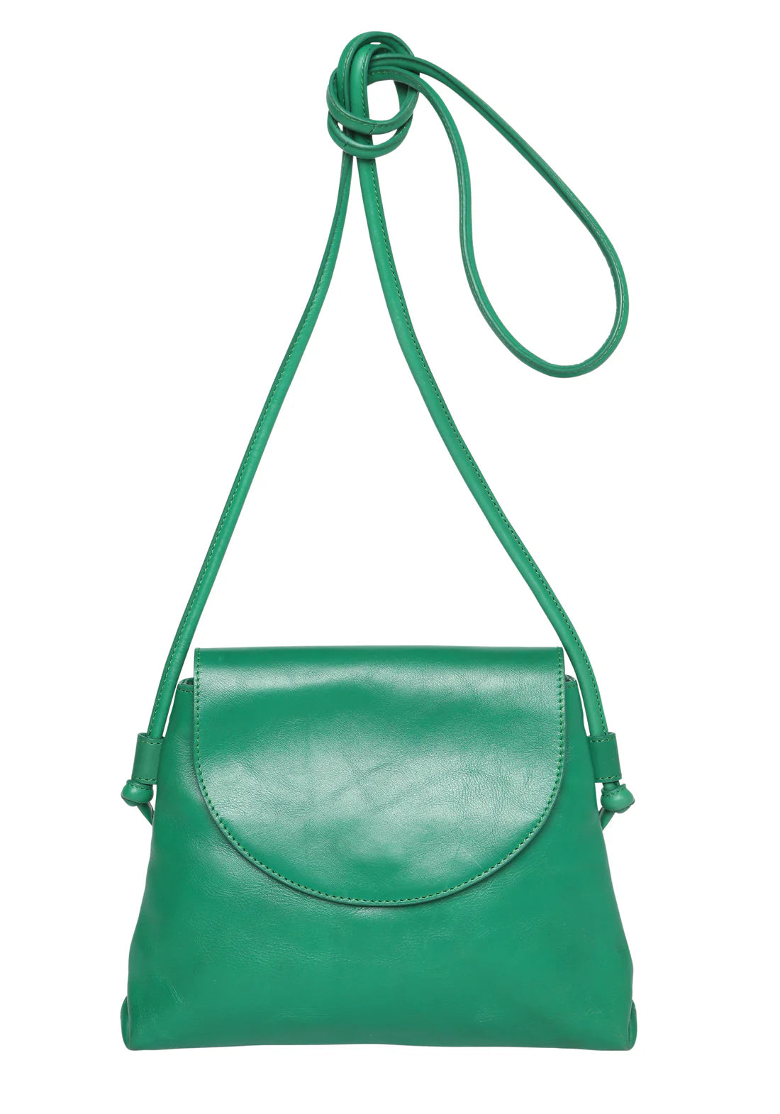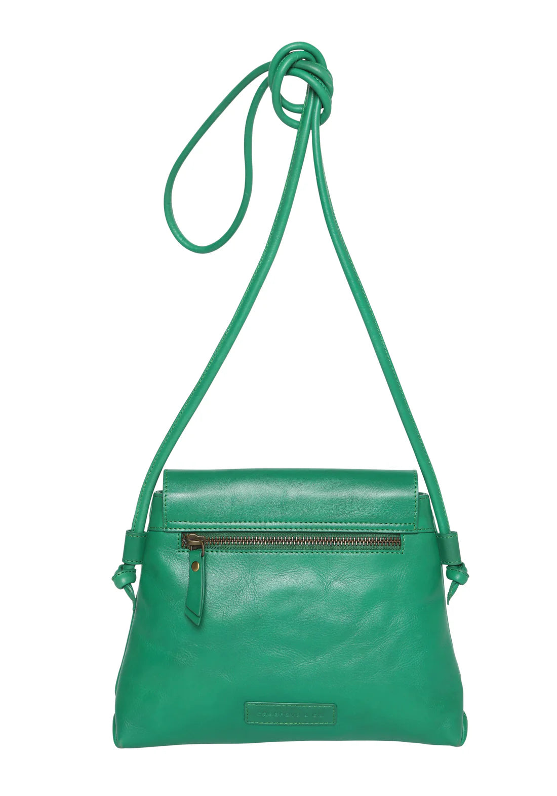 Magnetic closure under flap, back outside zip, easy adjust strap.