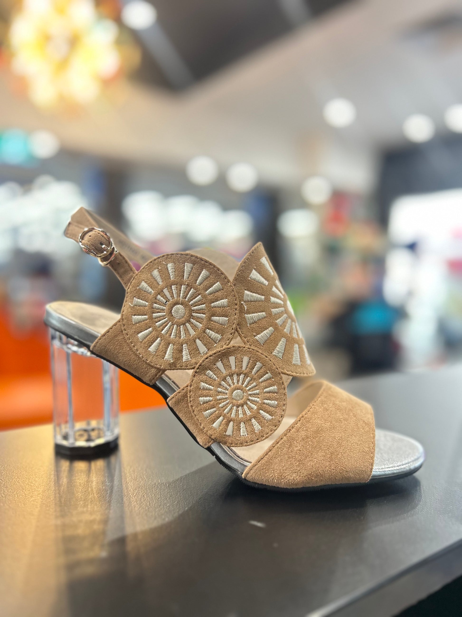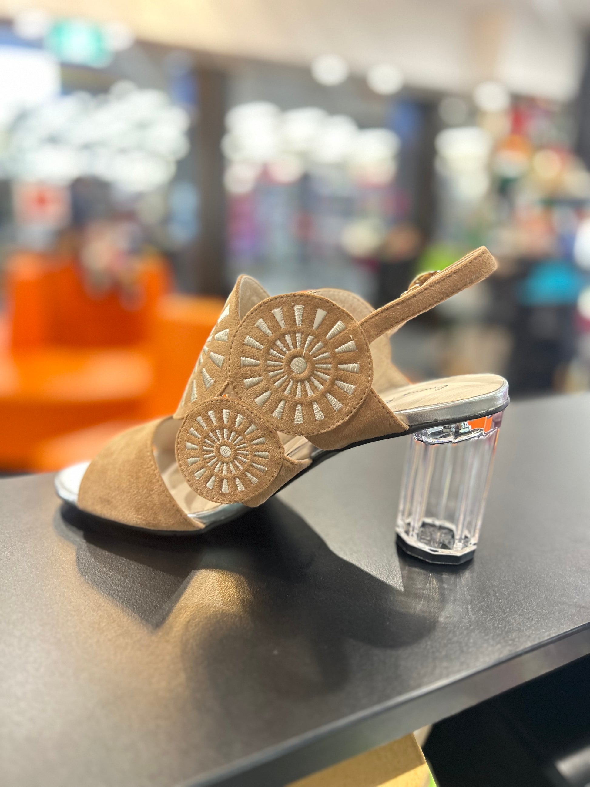 Step into the spotlight with the Stunning Hexagonal Shaped Translucent Heel from Emma Kate! This striking party shoe blends bold geometry with timeless elegance, featuring a sleek hexagonal heel that adds a modern edge to any outfit. The delicate embroidered suede design wraps your foot in luxury, while the slingback style ensures a perfect fit with every step. Whether you're dancing the night away or making an entrance at your next event, this gorgeous heel will have all eyes on you. Your party shoe search? Consider it sorted!
