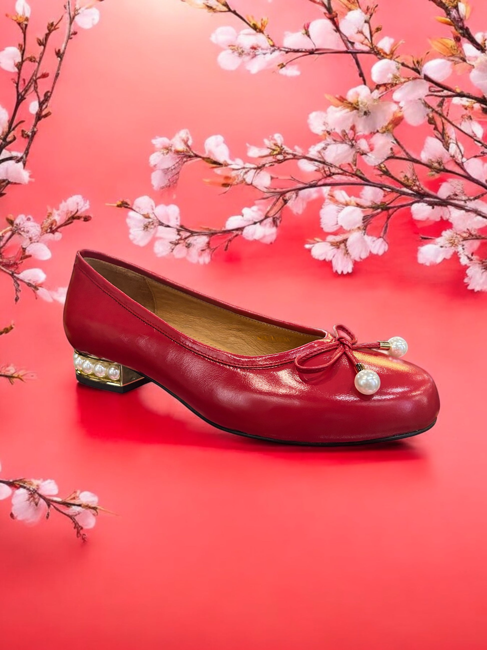 These exquisite ballet pumps by Bresley N.Z. are a refined fusion of elegance and opulence. Adorned with stunning pearls embedded in the heel, they offer a subtle yet captivating glamour. The delicate bow at the front is enhanced by two feature pearls, providing a touch of sophistication and charm. A true statement of luxurious craftsmanship and timeless style.