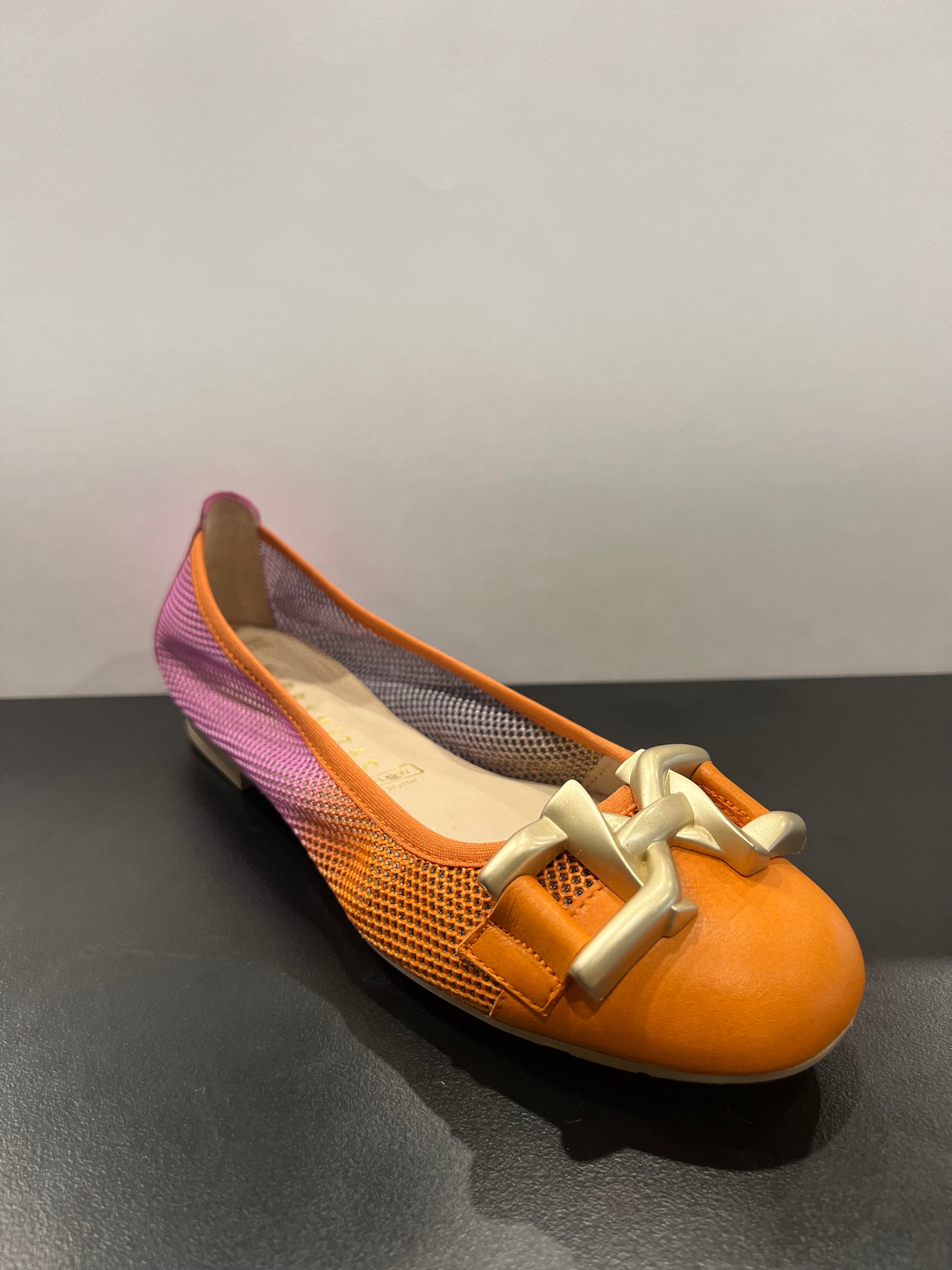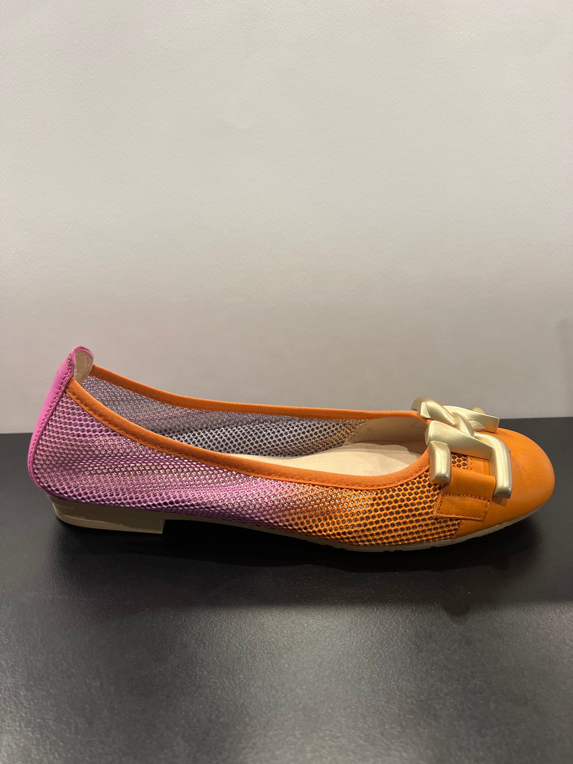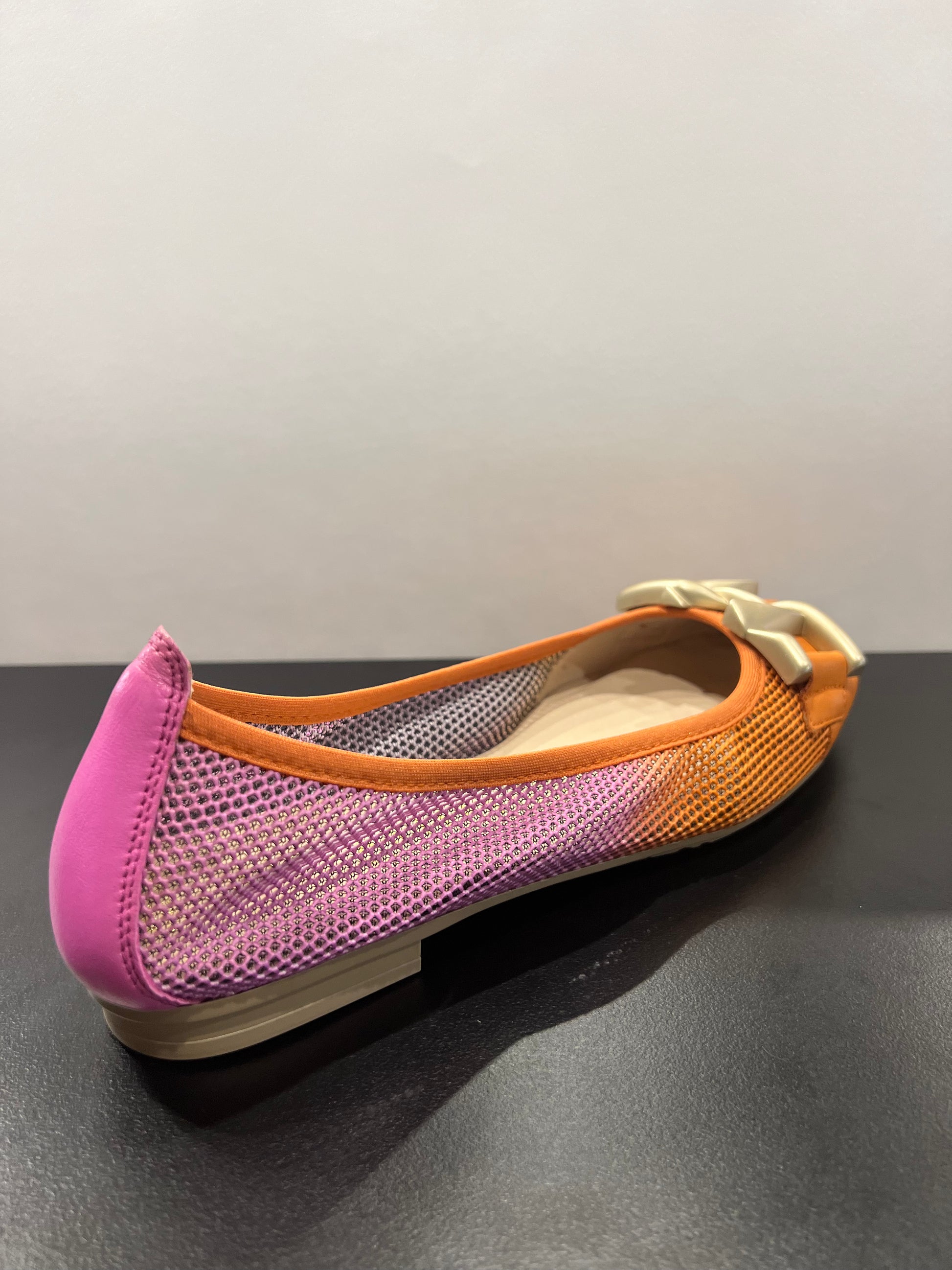 A gorgeous Spanish Ballerina made of breathable mesh fabric combined with bovine leather details. A design featuring a comfortable 3 cm high heel.
