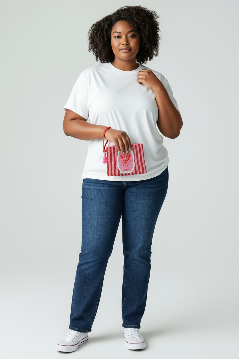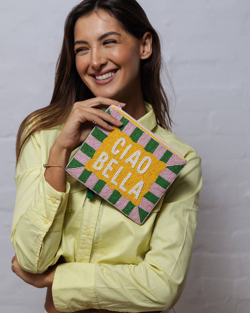Each one features gorgeous beadwork, a cute tassel on the zipper, and a handy wrist strap for easy grab-and-go style. Made from cotton fabric, beads, and wool (for that cheeky tassel detail), these little beauties are 20cm x 17cm of pure joy.