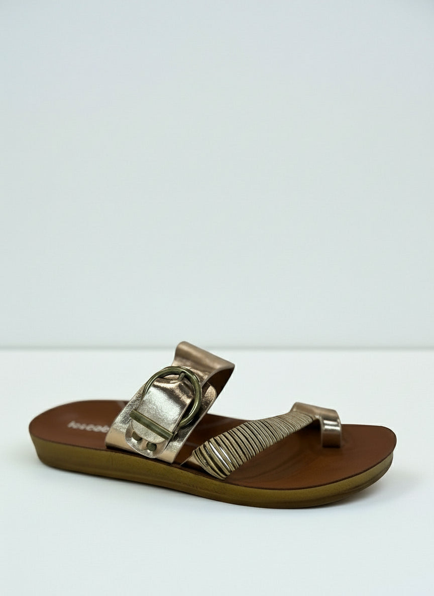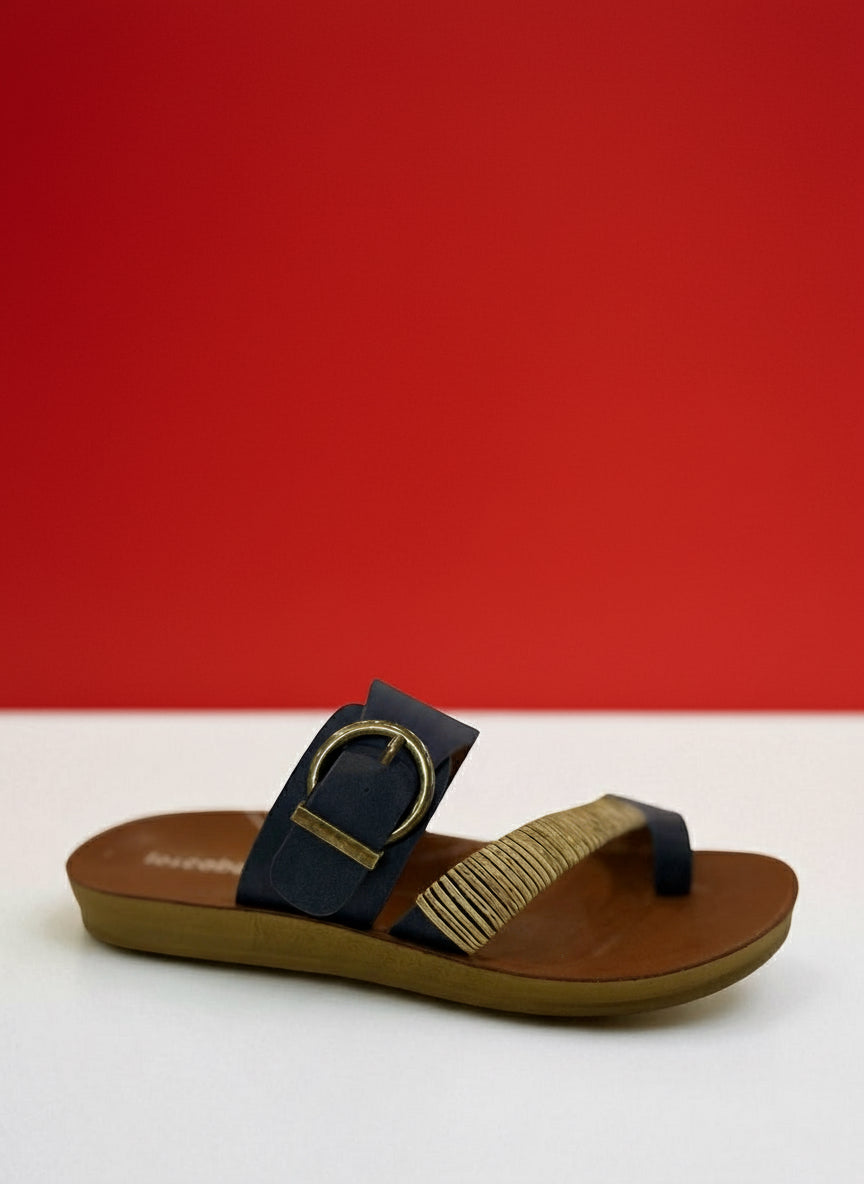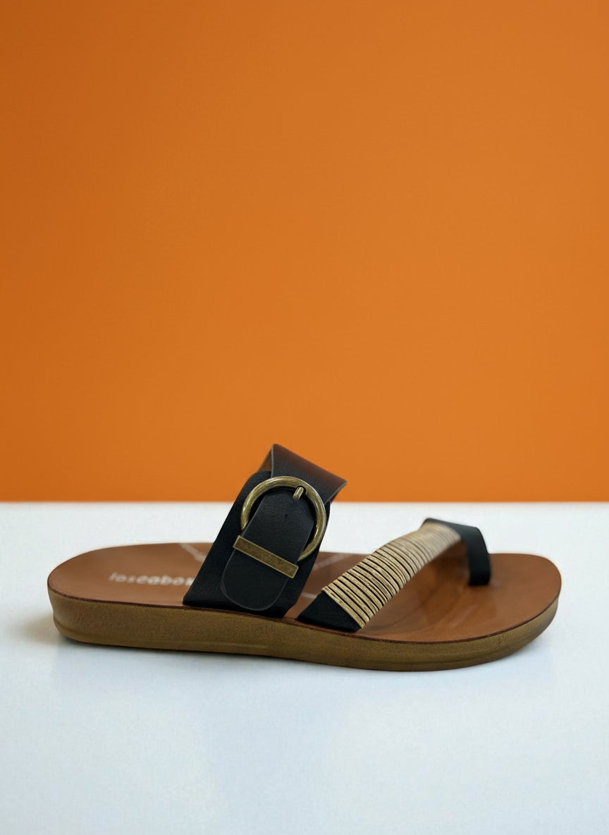 Los Cabos captures the spirit of fun in the sun with their Bria sandal. The ease of a slip-on is given a touch of natural beauty with our woven bamboo wrap gracing the toe strap, whilst the antique round buckle on the back strap adds a treasure box accent. Ideal for resort escapes, beach walks or just a shoe to slip on when you need to rush out the house.