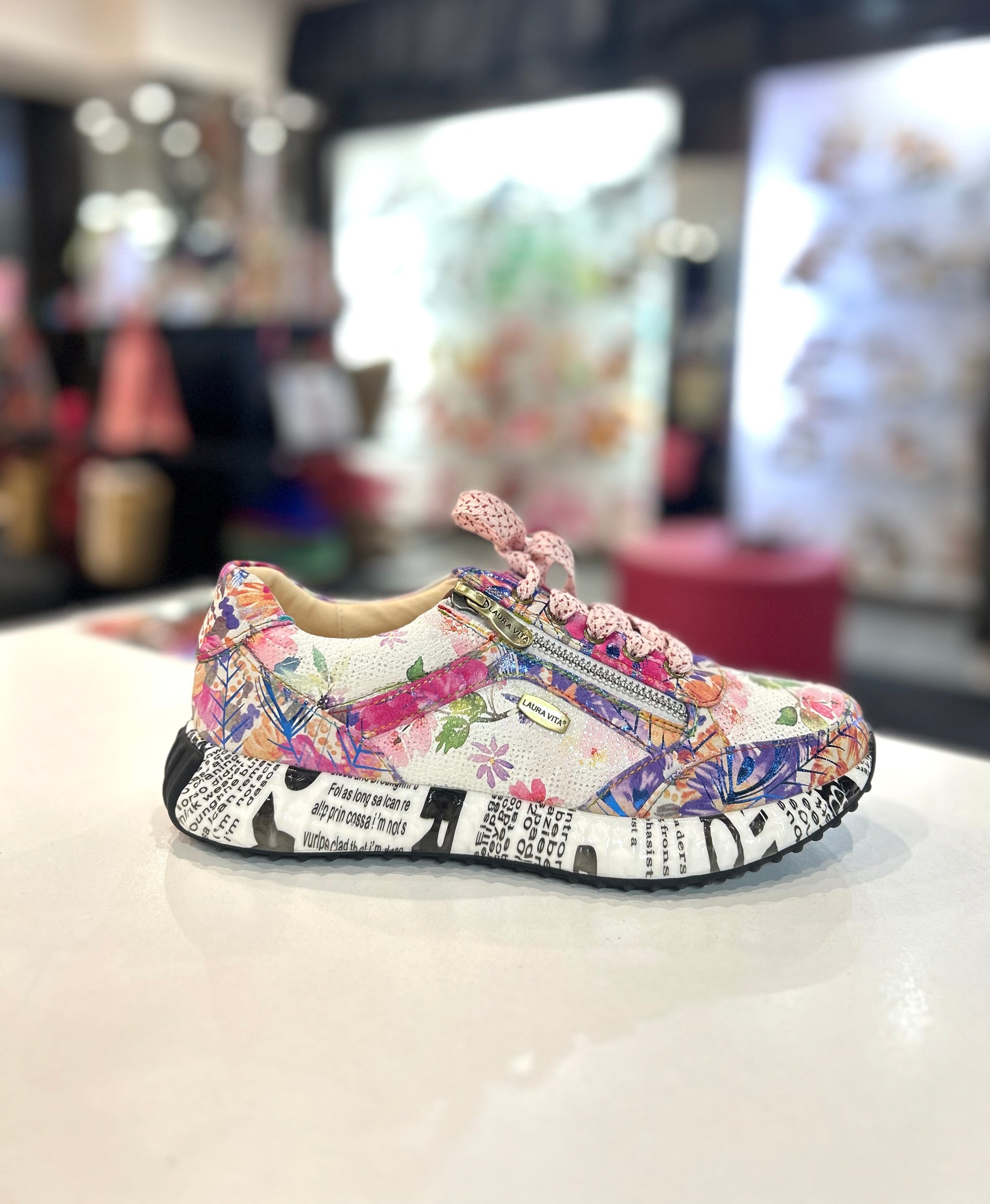 Step into a world of bold style with these whismical Laura Vita Sneakers.—a sneaker like no other. Adorned with divine floral embellishments, these shoes take a classic design and elevate it to something truly exceptional. Each stitch and petal brings a touch of femininity and flair, creating a standout piece that speaks to your inner fashionista. This year, Laura Vita have added a chic new twist with a sleek zip closure for easy on-and-off convenience, so you can slip into style with just a flick.