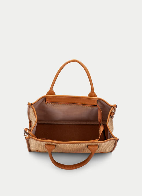 The ultimate everyday-to-weekend bag! Wicker meets tan in a stylish combo, complete with a removable zippered pouch inside and an external zip to keep everything secure. Clever feet on the base let it stand upright and stay hygienic wherever you go.