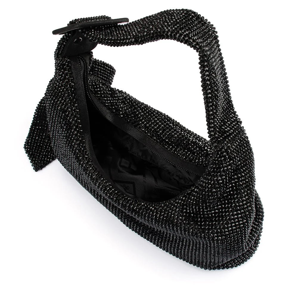 The CALYPSO Crystal Mesh shoulder bag can be used by day and by night. With lots of room inside for all your event needs plus a zipper closure to keep everything safe and secure.