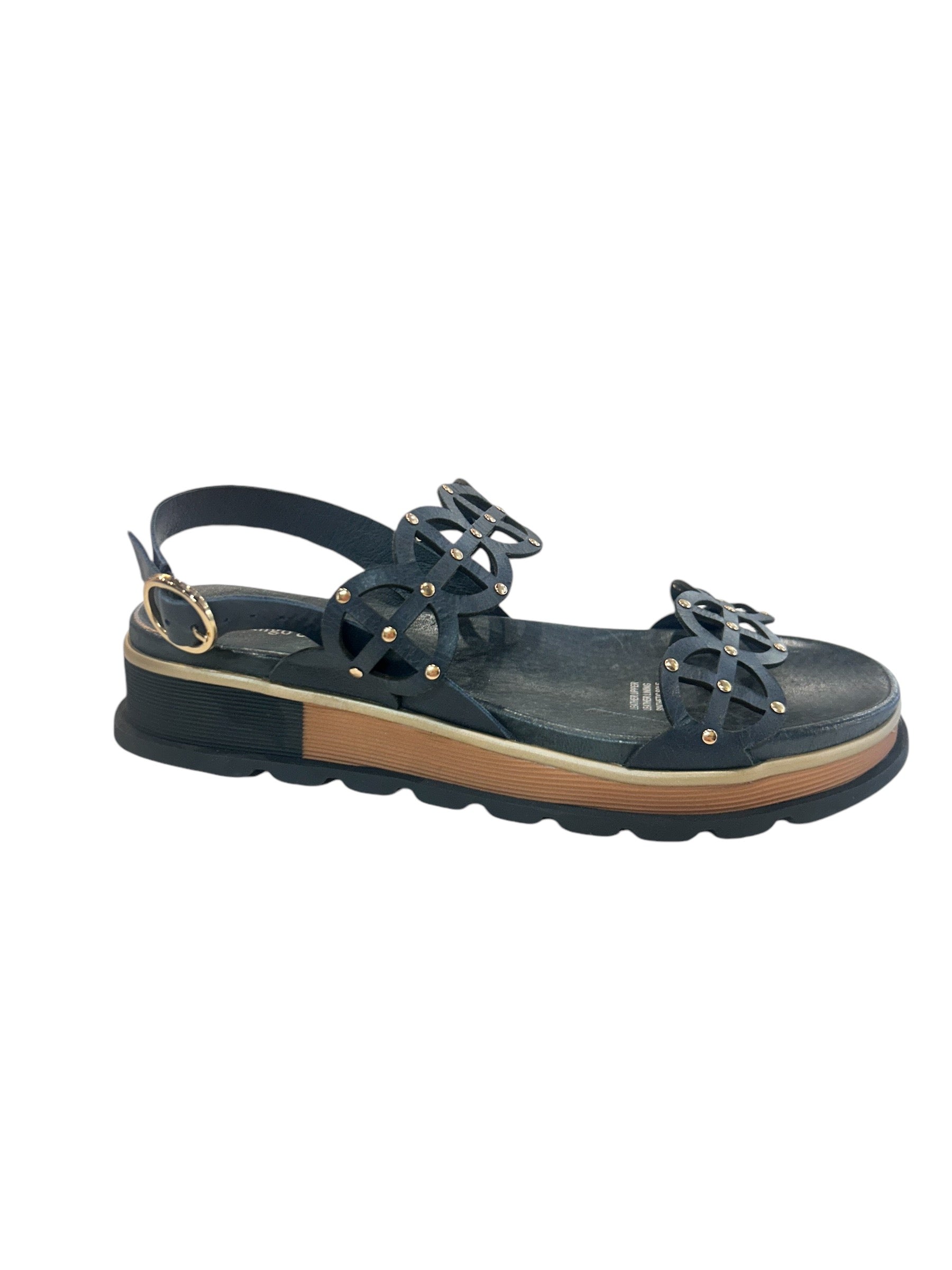 Carola is summer done right – a moulded footbed sandal with the prettiest laser-cut design and stud embellishments for a touch of edge. Set on a cleated platform wedge, this flat leather style is light, modern and made to wear on repeat. Perfect for sun-soaked days, balmy nights and everything in between.