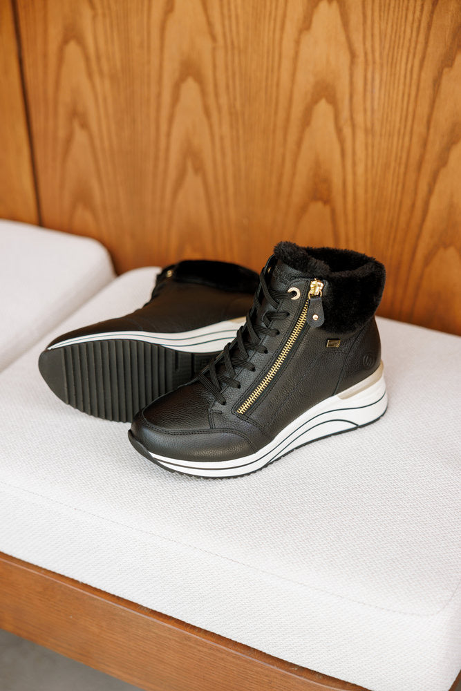 Style and comfort - the perfect duo! Winter is twice as much fun with these remonte lace-up boots made of smooth leather. The lacing complements the zipper and thus guarantees optimal support and perfect fit. The fur collar on the shaft is a real eye-catcher. The Lite 'n Soft technology allows for the combination of a lightweight outsole and a padded and removable insole. The cozy and very warm virgin wool lining is guaranteed to keep the feet warm all day long and thanks to the remonteTEX membrane, they stay dry too! You can't get more style than this!