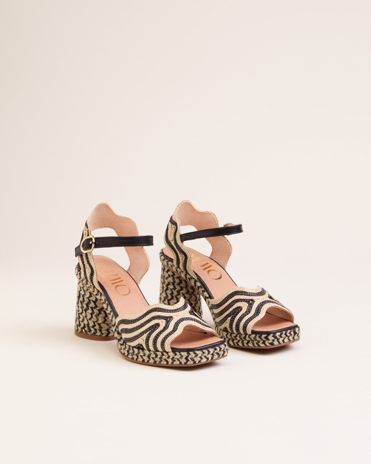 Meet our absolute favourite platform heel – the Gaimo Danae. Crafted in cotton raffia with two-tone straps, wave detail and an easy side buckle, she’s as striking as she is wearable. The 9.5cm heel with a 2cm platform gives you height without the wobble, while the leather cushioned insole keeps every step comfortable.