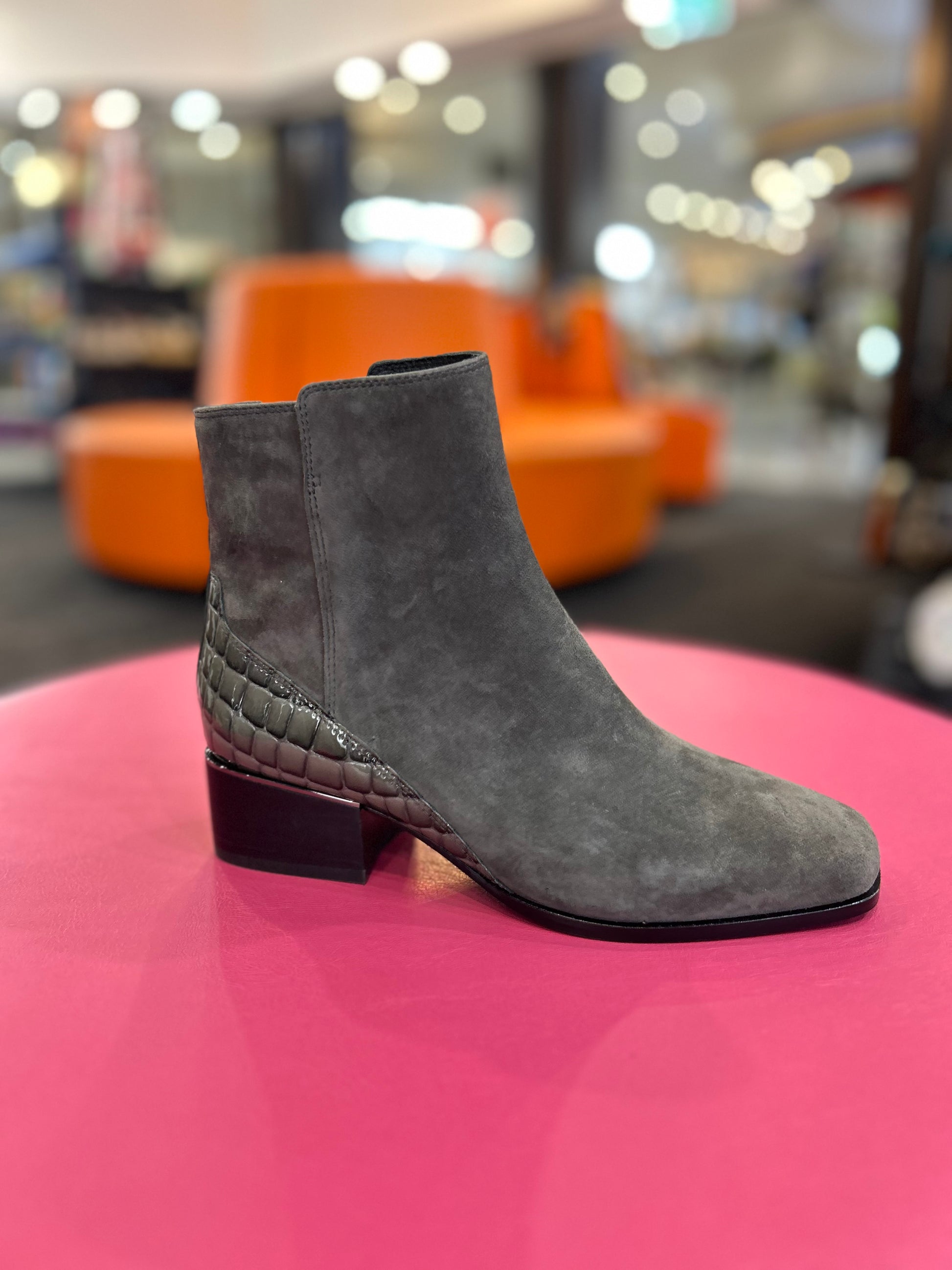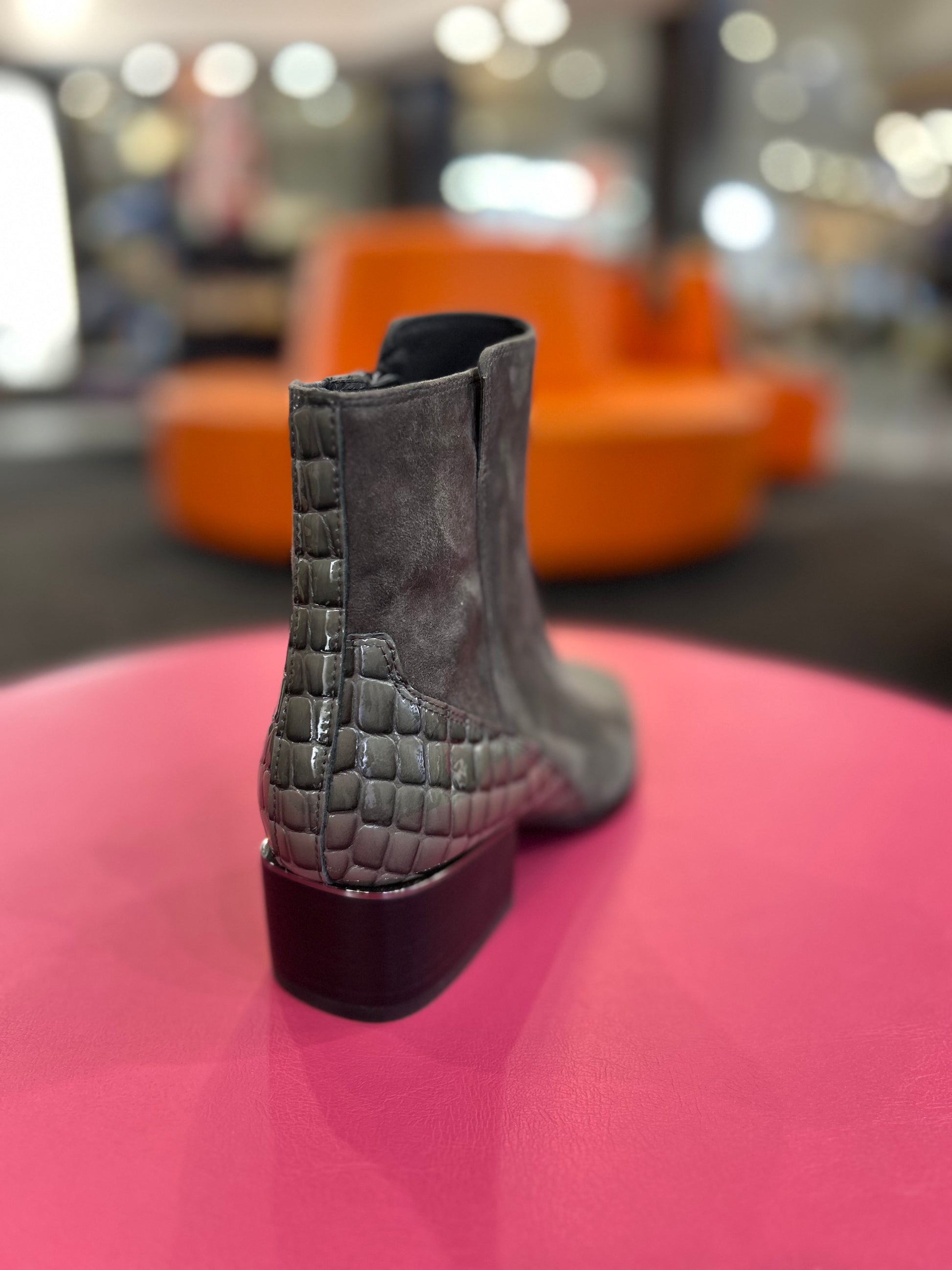 Elevate your style with these heeled leather ankle boots from Django & Juliette. DONALDSY has a faux croc embellishment that gives a polished look to your ensembles.