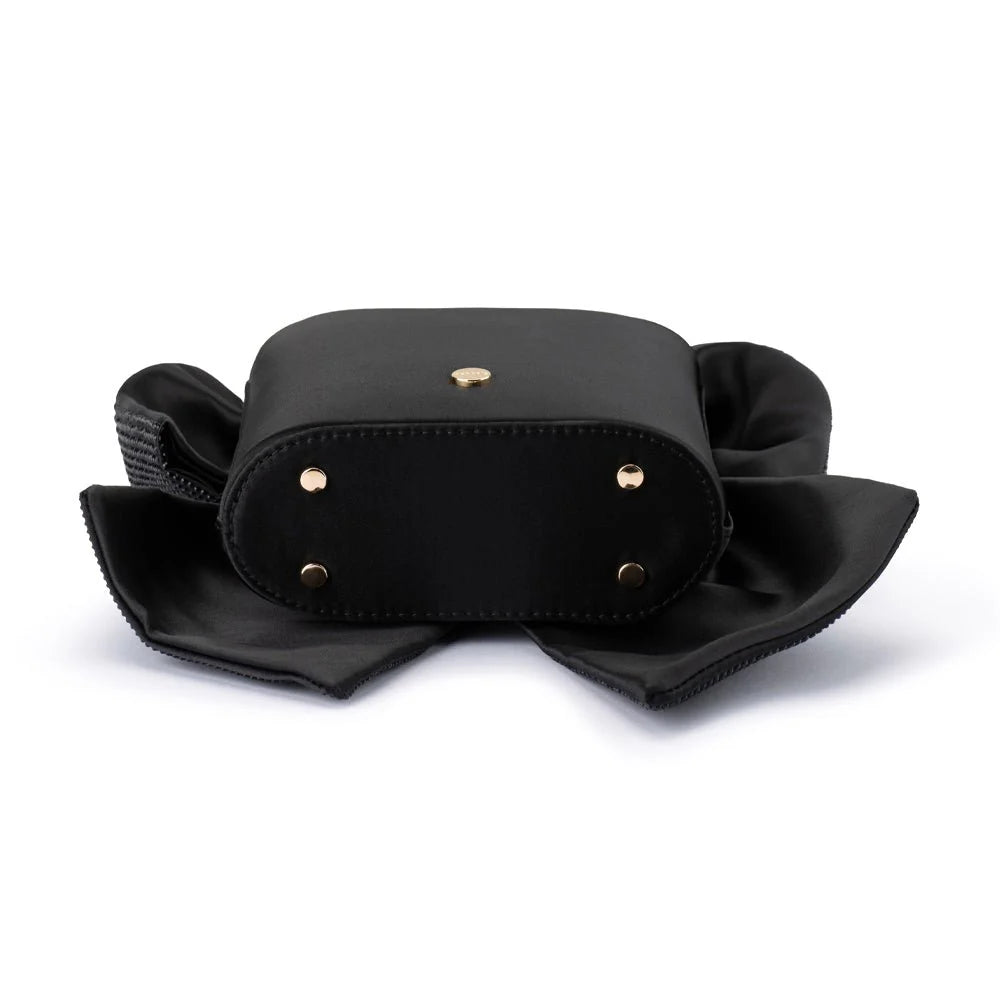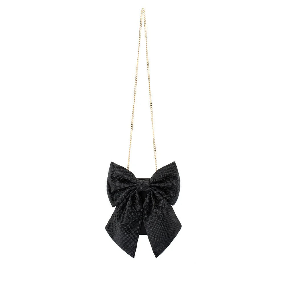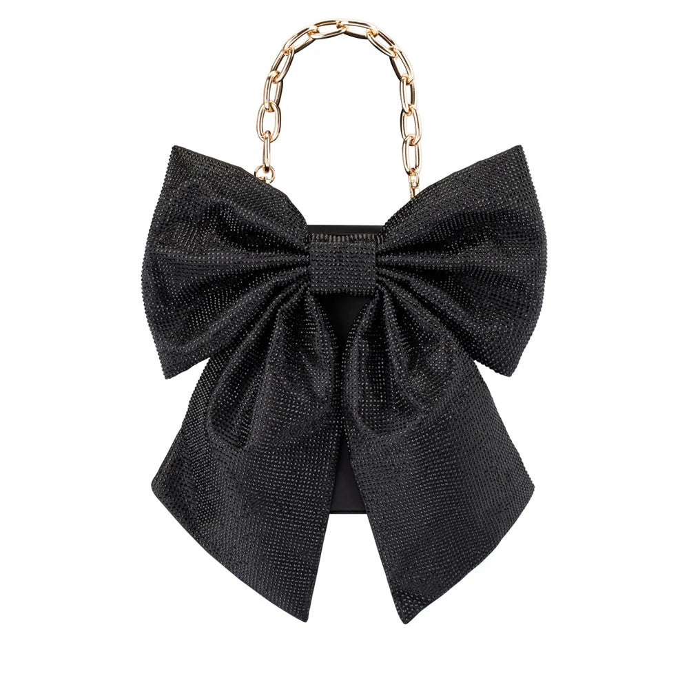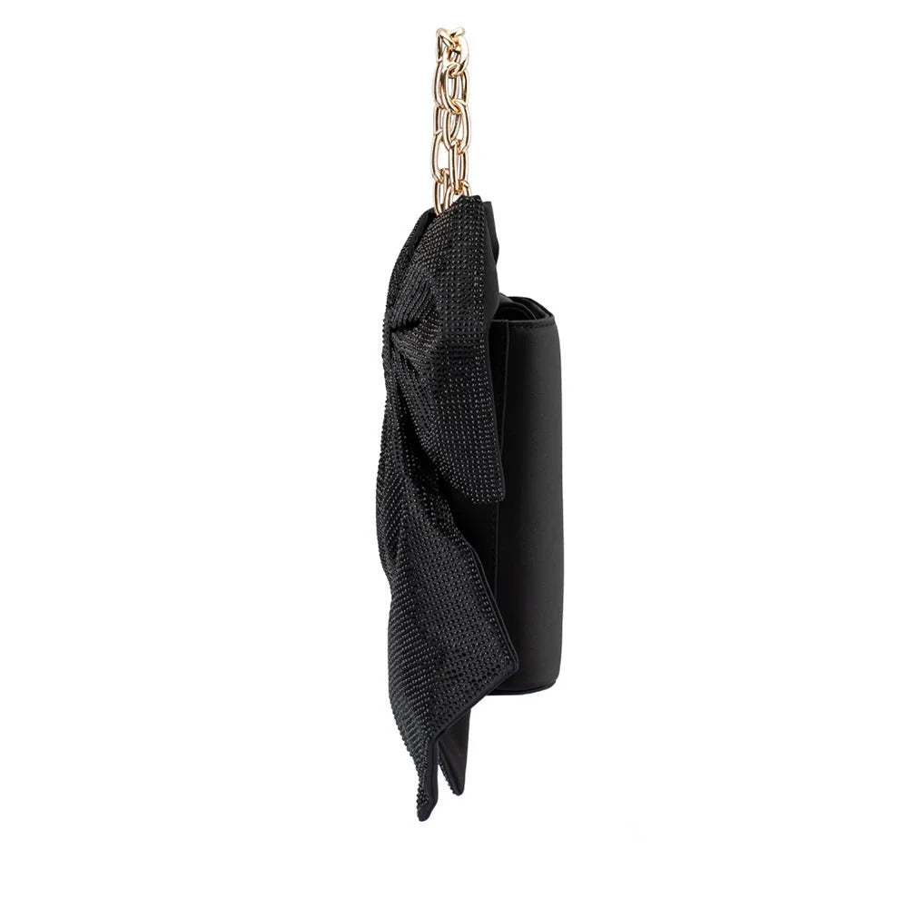 Hidden behind a statement crystal embellished bow is a spacious evening bag with a magnetic bridge closure. The DREW Crystal Bow bag is for those who like a little something extra whilst keeping it glamorous, with a sparkling crystal hotfix embellished bow and an adorable chain handle. Alternatively, clip on the shoulder chain to go hands free.