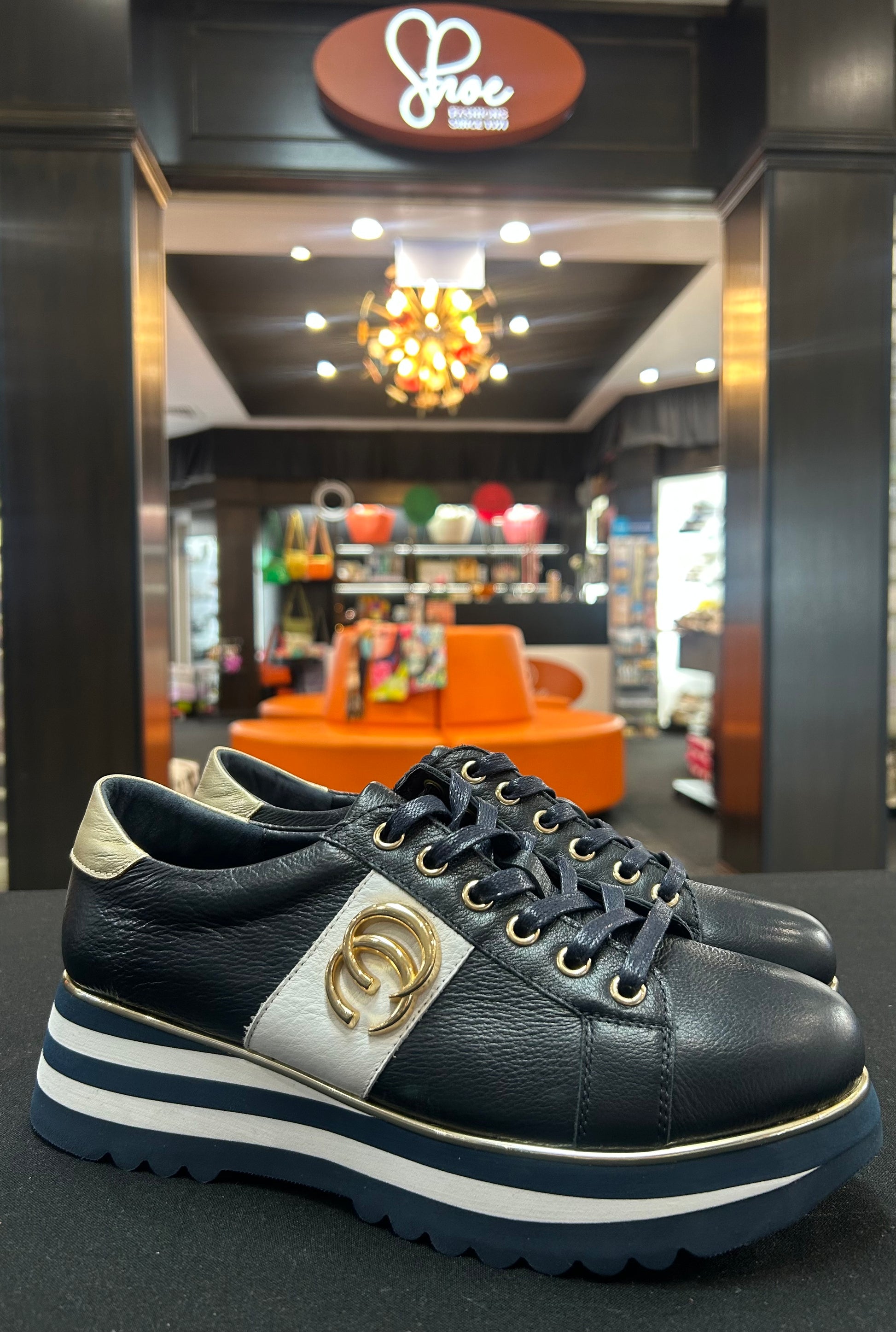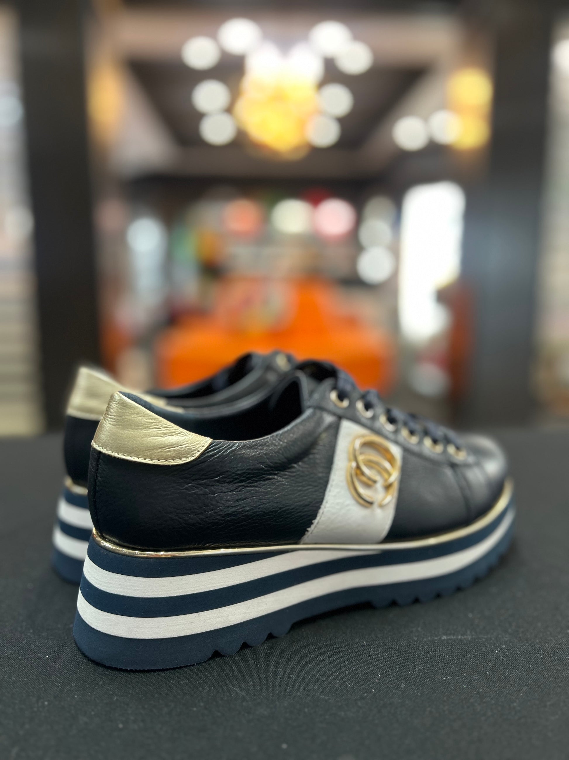 This navy standout features luxe gold embellishment, gold rand and eyelets, and a statement platform sole. Dressy yet lightweight, it’s far from your average lace-up.