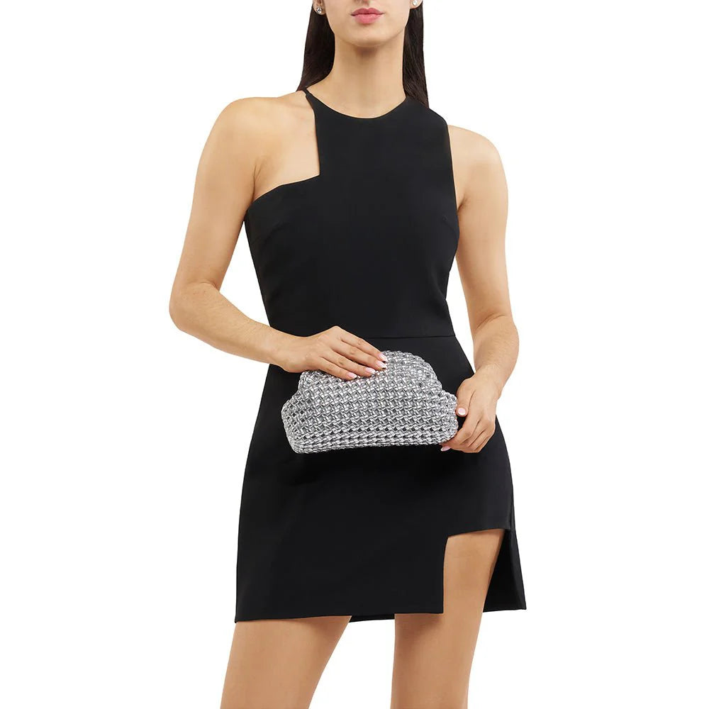 The EVERLY Hand Woven Clutch features a beautiful textural finish that is sure to elevate any look. With its roomy interior, this bag is perfect for transitioning from day to night or beach to bar while making a statement wherever you go. This versatile clutch includes a removable shoulder chain for when you need to go hands free and a chain handle for an alternative styling option.