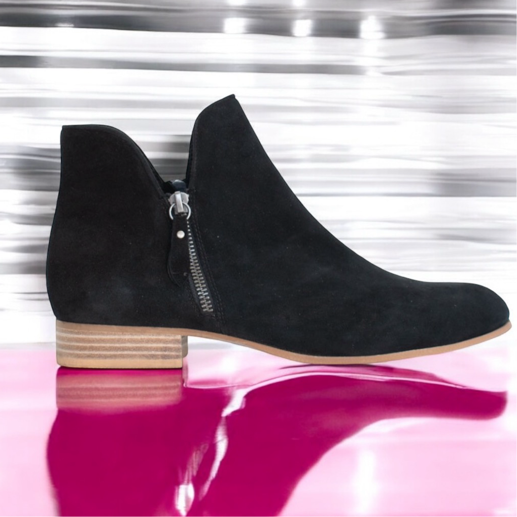These leather ankle boots are a year-round wardrobe staple that goes with everything. FAYE by Django & Juliette has a twin zip style that makes them easy to slip on and off.