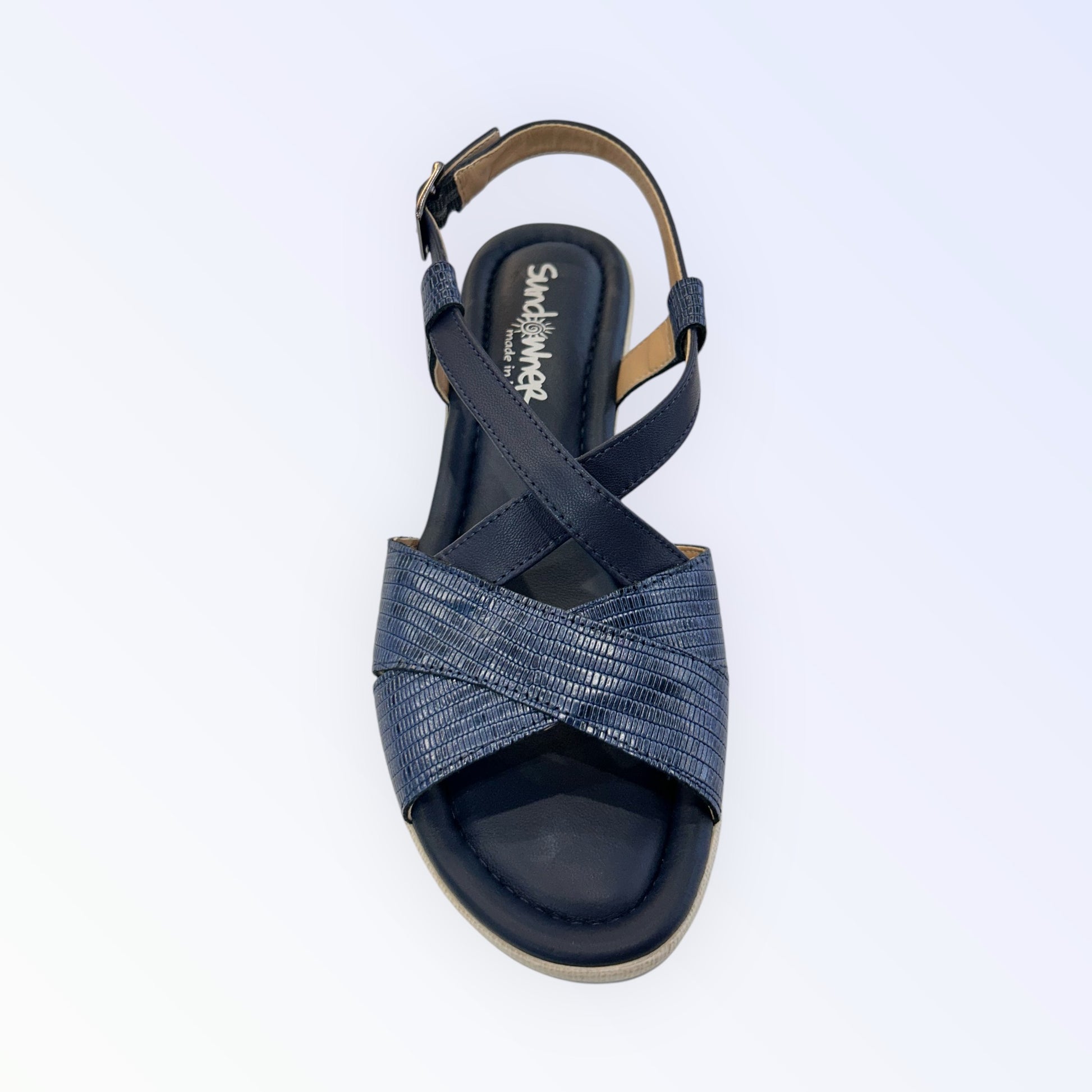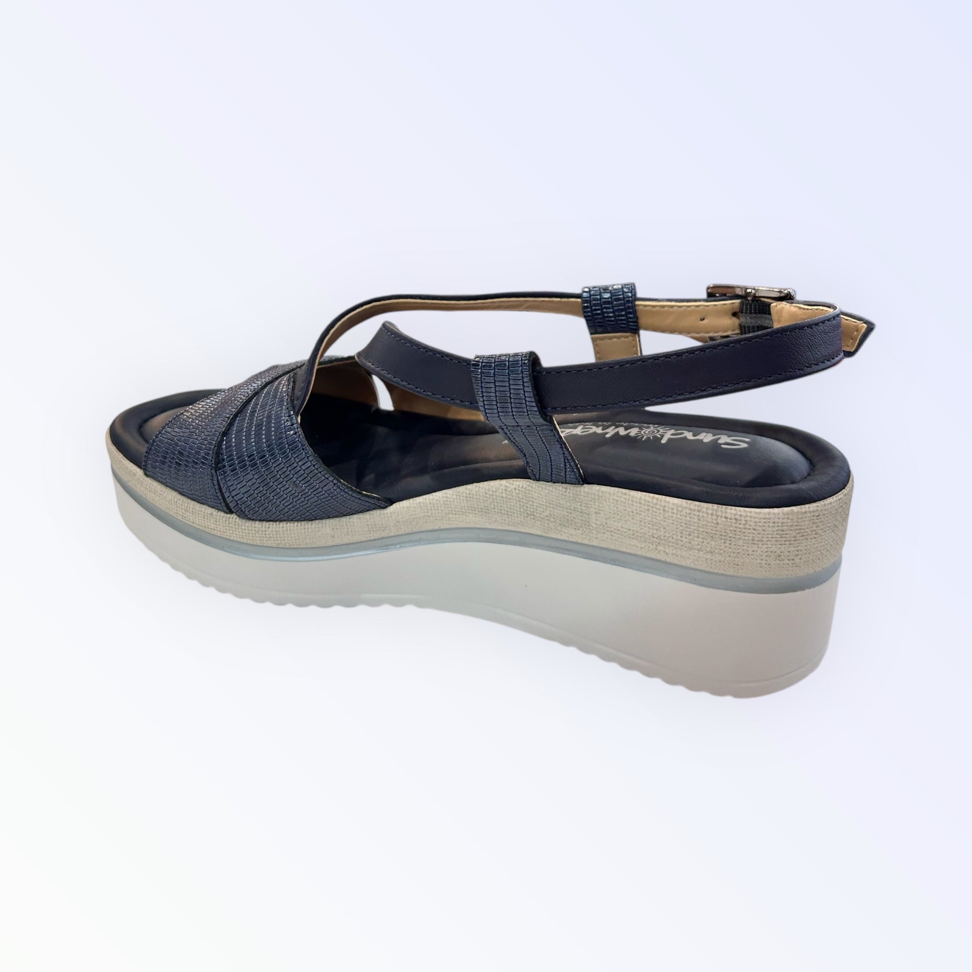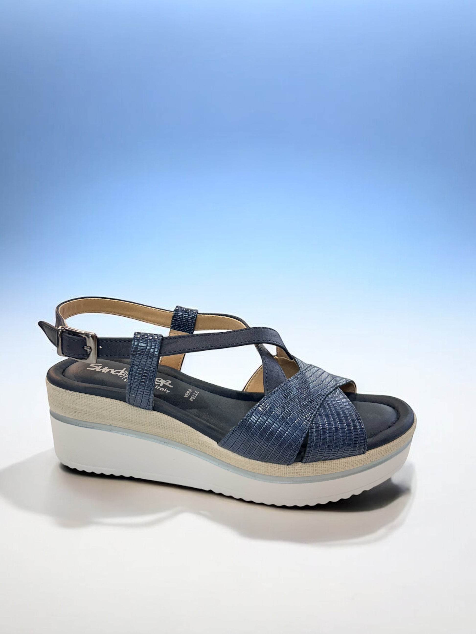 Introducing the gorgeous Navy wedge from Sundowner—handcrafted in Italy with meticulous attention to detail. Not only does it feature exceptional cushioning for all-day comfort, but this beautiful shade of navy is a rare find, making it a versatile must-have for your wardrobe. We absolutely love how it effortlessly complements everything from crisp whites and classic stripes to breezy linens and laid-back denims. A true wardrobe staple with a touch of Italian craftsmanship.