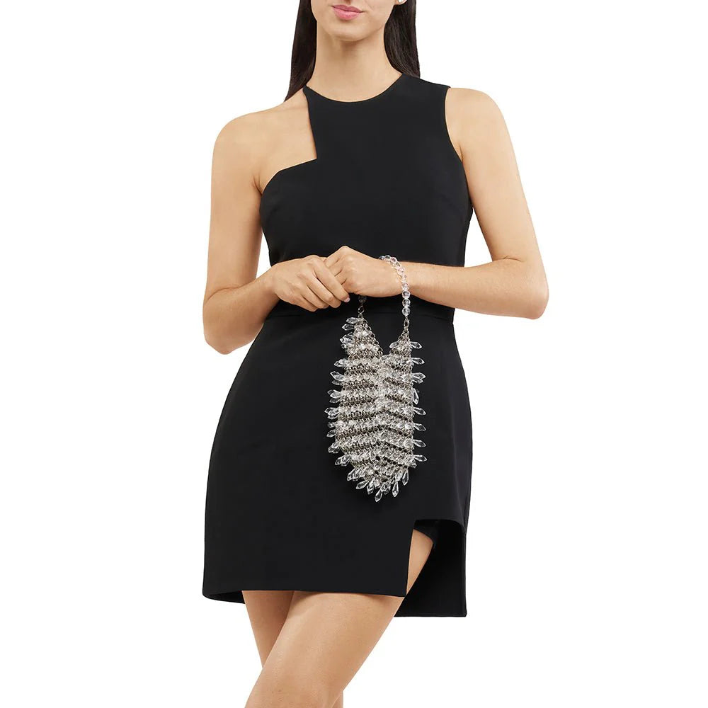 The FLORENCE Chainmail and crystal top handle bag is a showstopping evening bag. Turn heads with this sparkling slouch style chainmail bag, which features all-over shimmering crystals. Easily fits a large smart phone and includes a shoulder chain as well as a matching crystal handle for versatile styling options.
