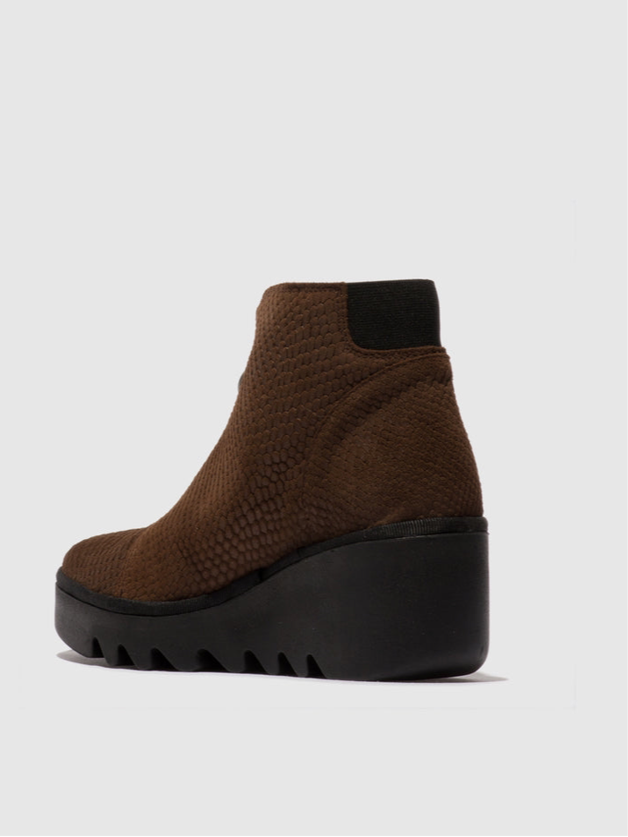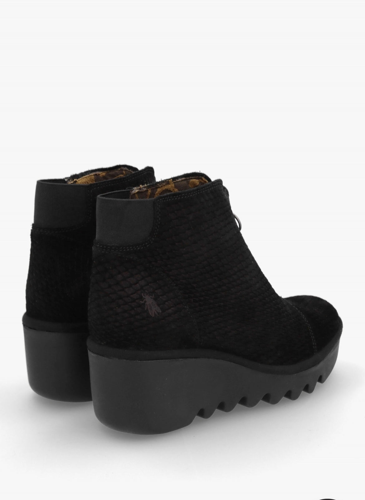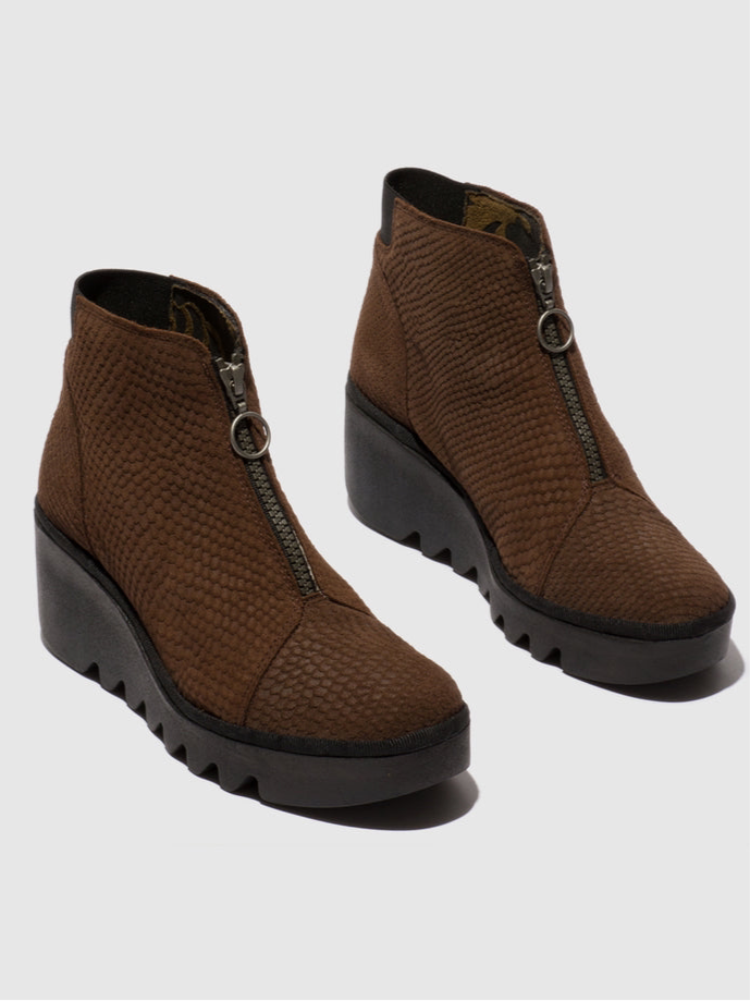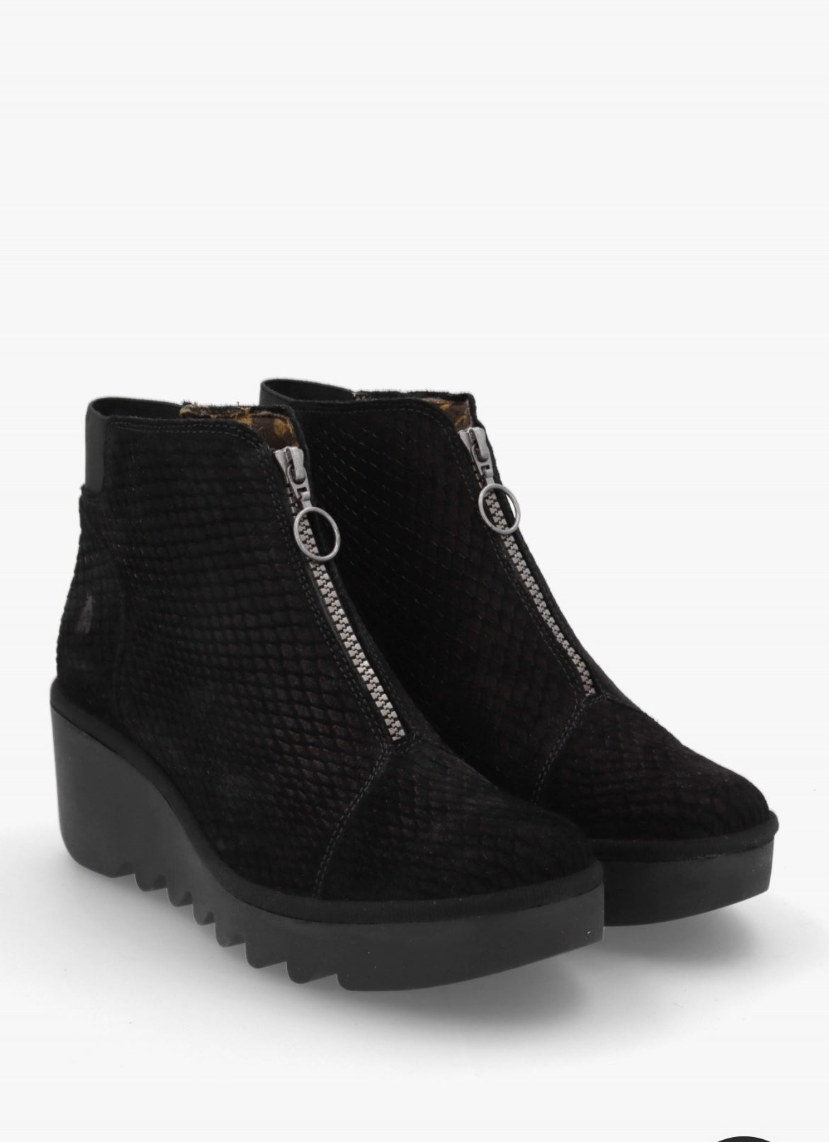 Level up your look with these Fly of London boots! With a killer design on a 6cm platform wedge and a gorgeous embossed suede upper, they’re all about style. The easy zip-up front makes getting ready a breeze. Made in Portugal, these boots are ready to rock your wardrobe!