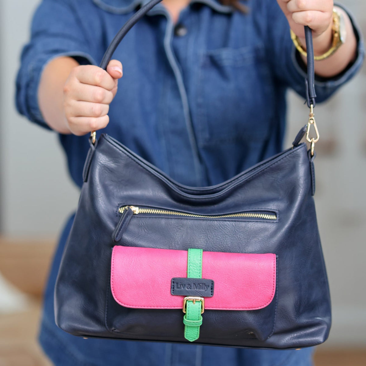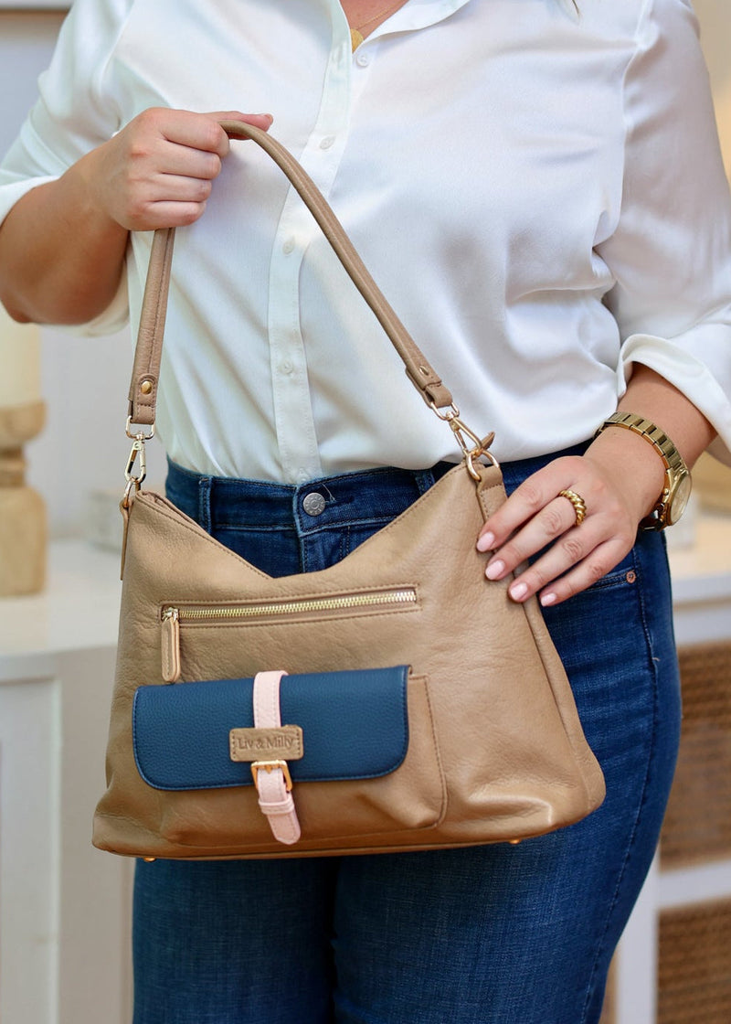 Convenience, class and versatility are exactly what GABRIEL represents. Designed with a practical front pocket, this bag is available in Navy, Nutshell and Caramel, offering timeless style and functionality. GABRIEL also features the flexibility of both a sturdy handle and a long crossbody strap.