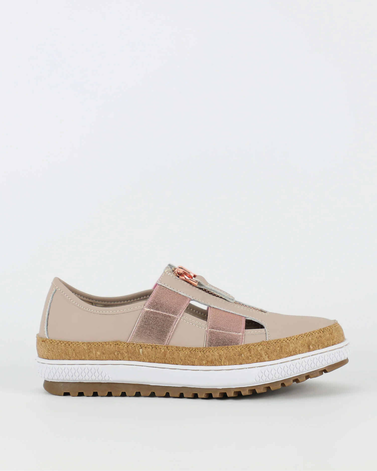 Introducing the new Bay Lane slip-on shoe, where sporty meets chic! Galley features a sleek design with rose gold elastic gussets and zip. These shoes are perfect for those always on the go. The non-slip sole ensures comfort and stability, while the easy slip-on style adds convenience to your busy day.