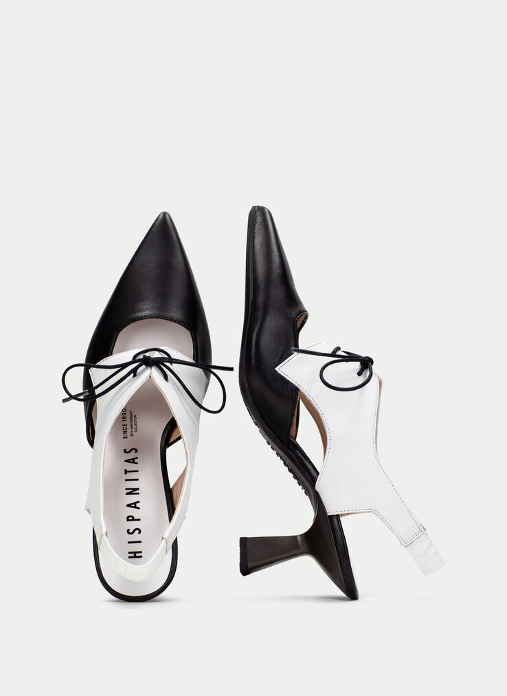 This black and white slingback from Hispanitas is pure tuxedo chic with a playful twist. The pointed toe and bold contrast bring instant drama, while the delicate lace-up design keeps things just the right amount of flirty.