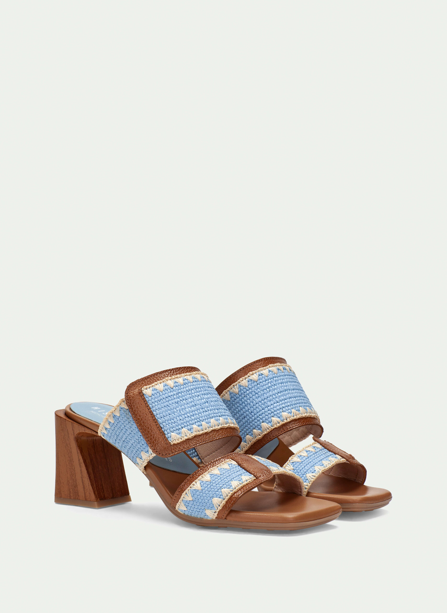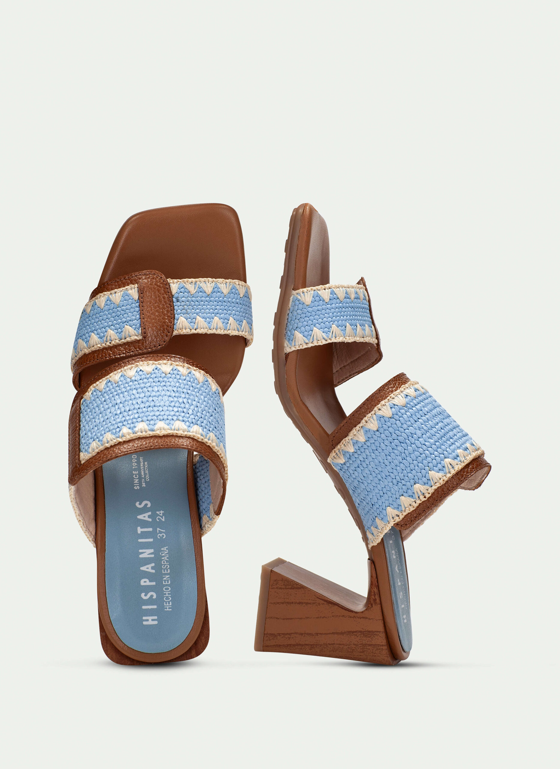 Say hello to your new favourite from Hispanitas – a dreamy mix of raffia and leather in sky blue and tan. The 7cm splayed heel gives just the right lift with plenty of support, while the non-slip sole has you walking with confidence.