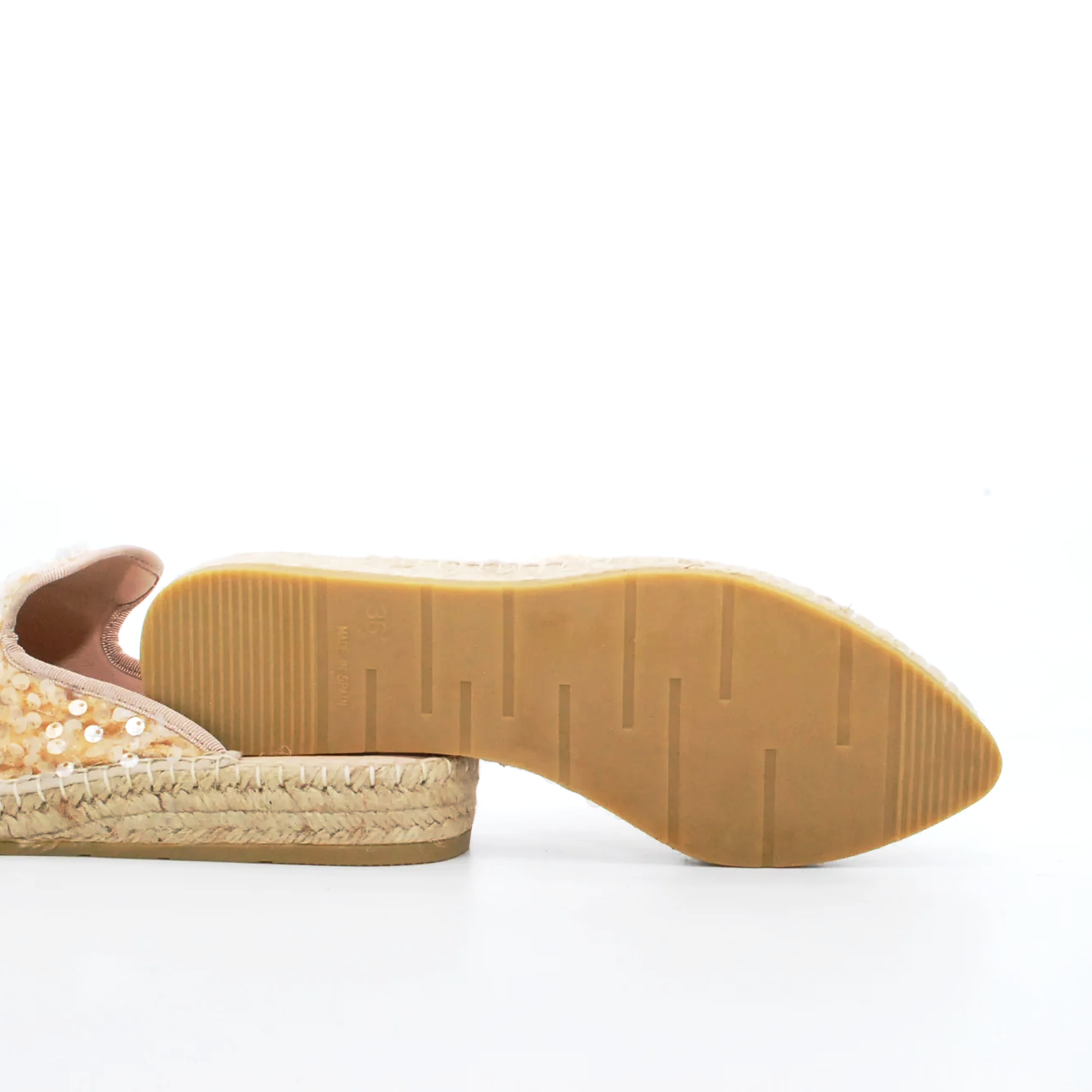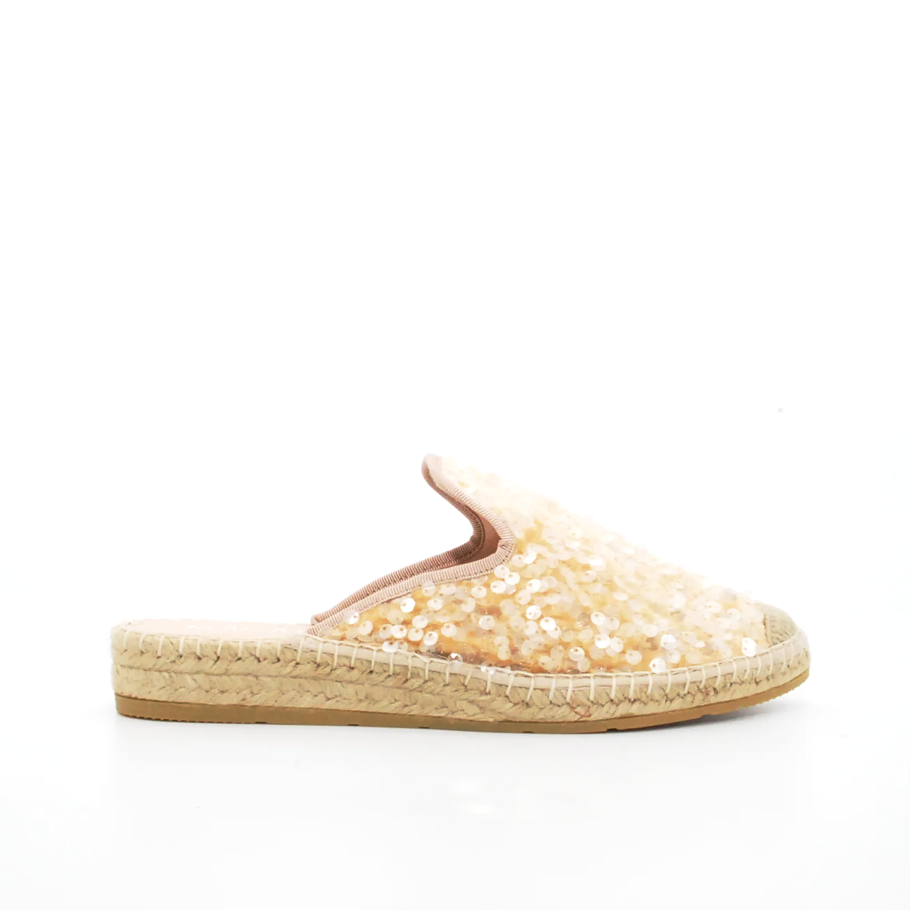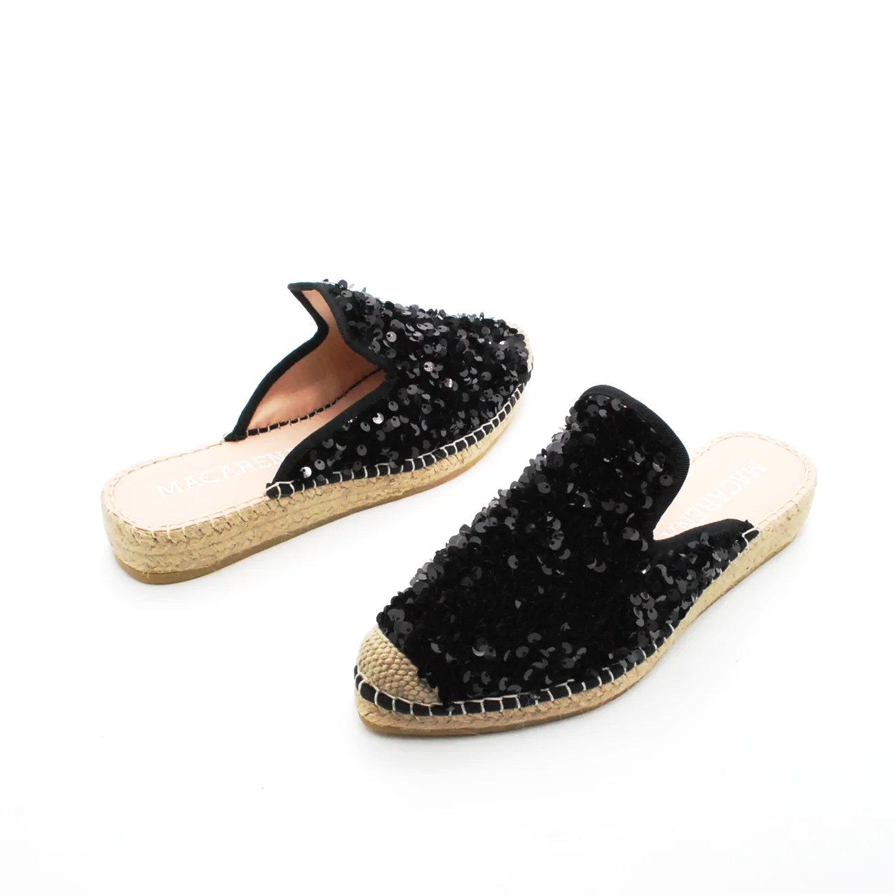 These Spanish Macarena sequin mules are a sparkling delight, catching the light with every step. the shimmering sequins dance and twinkle, creating a mesmerizing effect that draws the eye. With their delicate tow shape and a modes 4cm heel, they offer both elegance and comfort, making them the perfect choice for any occasion.