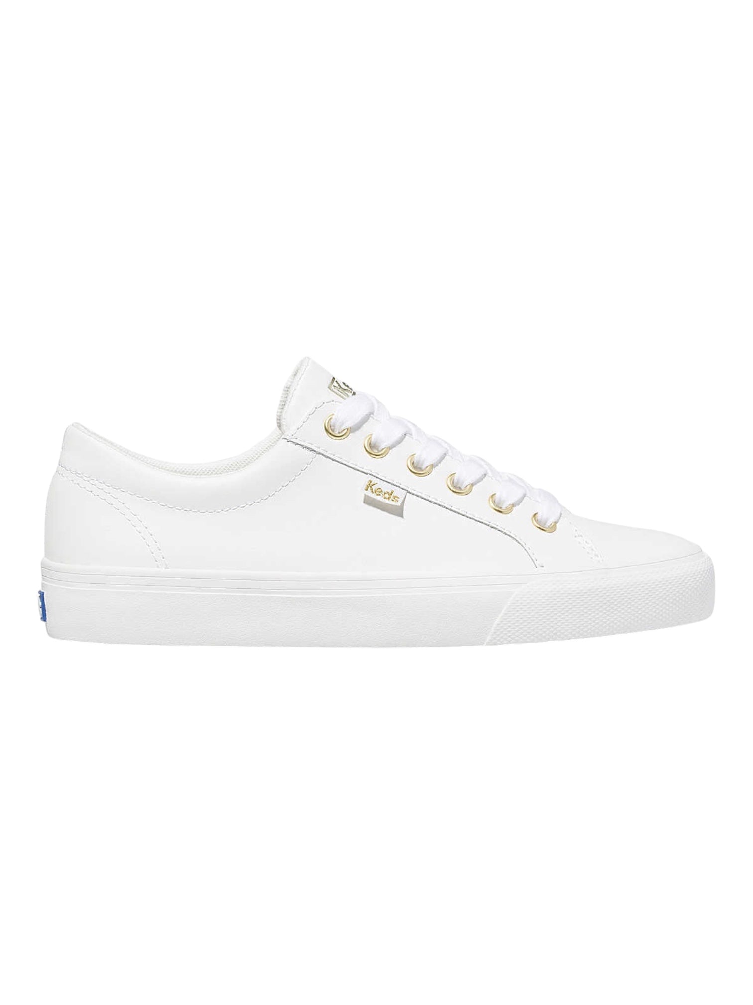A perfectly minimal sneaker with sporty retro vibes. Sleek white leather and shiny golden details give this lace-up sneaker a luxe appeal that’s incredibly easy to style. The Jump Kick is perfect with every fit of jean and is also an easy way to make fancier pieces laid-back enough for everyday wear, broadening your wardrobe in one easy step.