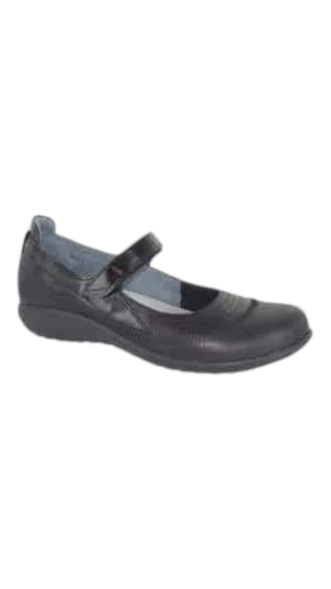 The Kirei is a fashionable orthotic-friendly Mary Jane on the Koru collection. This shoe has a padded heel cup for stability and features Velcro adjustability at the instep for added support and comfort. The front portion of this shoe is features padded technical lining to provide added comfort and remove moisture. This style also features NAOT's removable anatomically-correct cork and latex innersole which is wrapped in soft suede which moulds to the foot with wear. The NAOT Women’s Koru Collection features a 3.54cm polyurethane sole which is extremely lightweight, flexible, and durable.