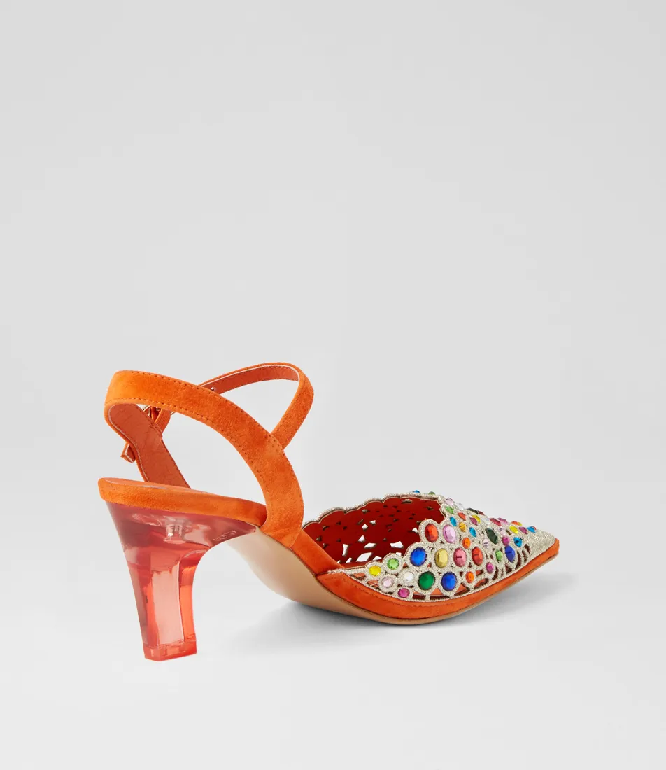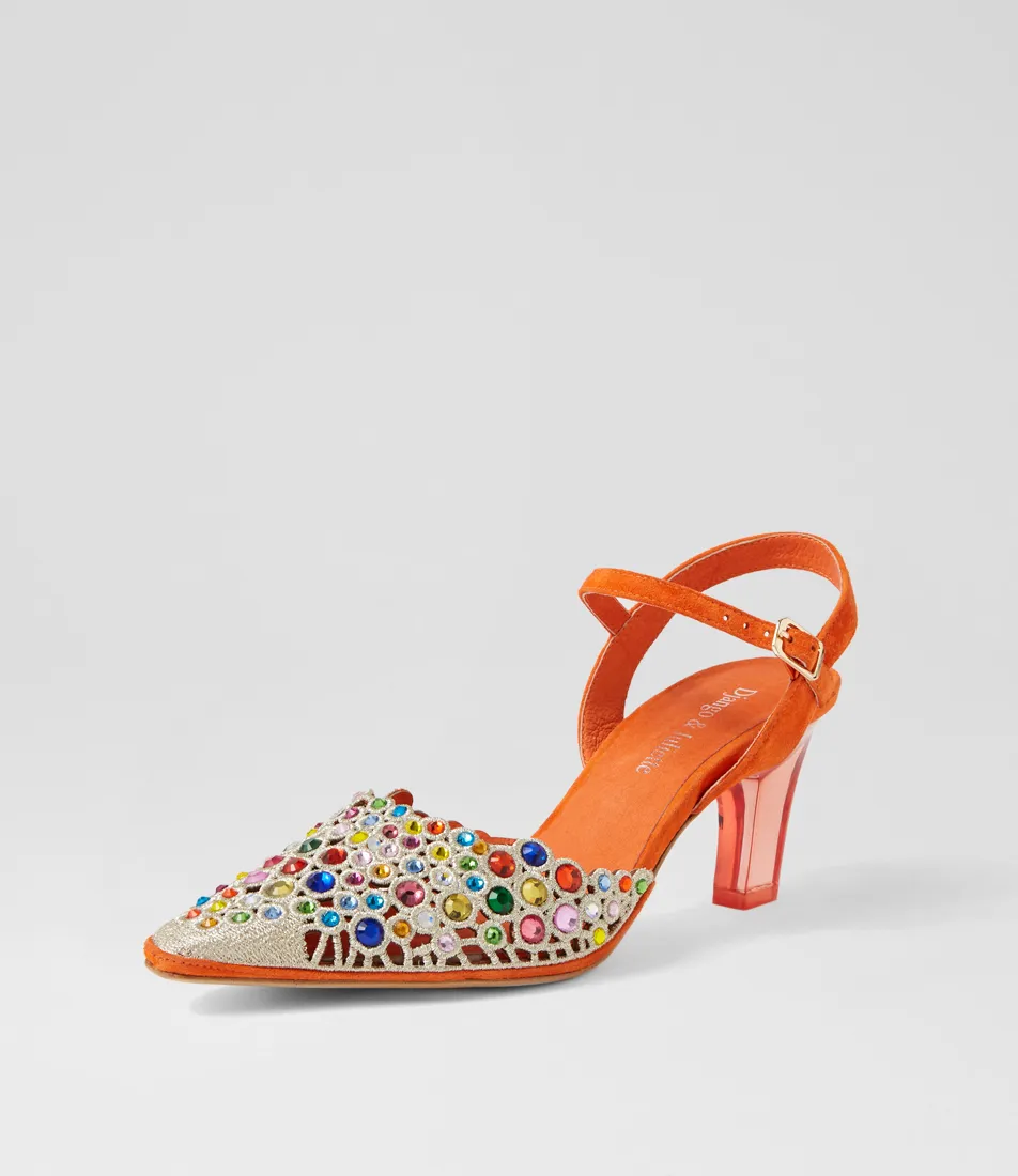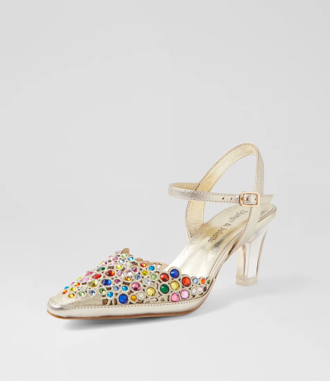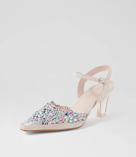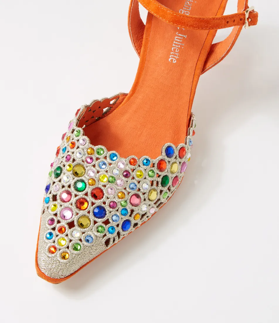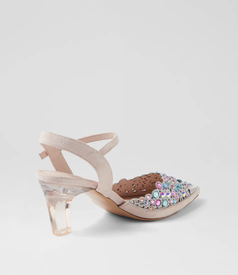 Step into a world of radiant elegance with Django and Juliette’s stunning suede heels, adorned with a symphony of beautiful embellishments. The translucent wine glass heel elevates your stature, while the gracefully elongated toe shape beautifully enhances the leg line. Wear these masterpieces, and you’ll shine like a sunset, turning every head and capturing hearts wherever you go.