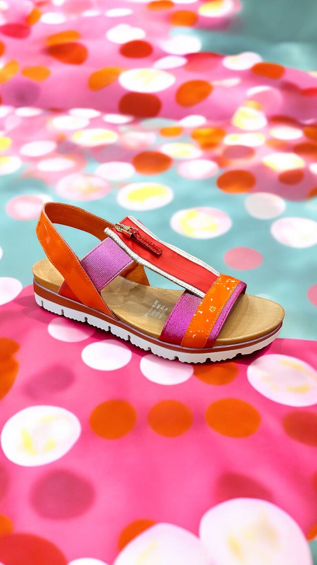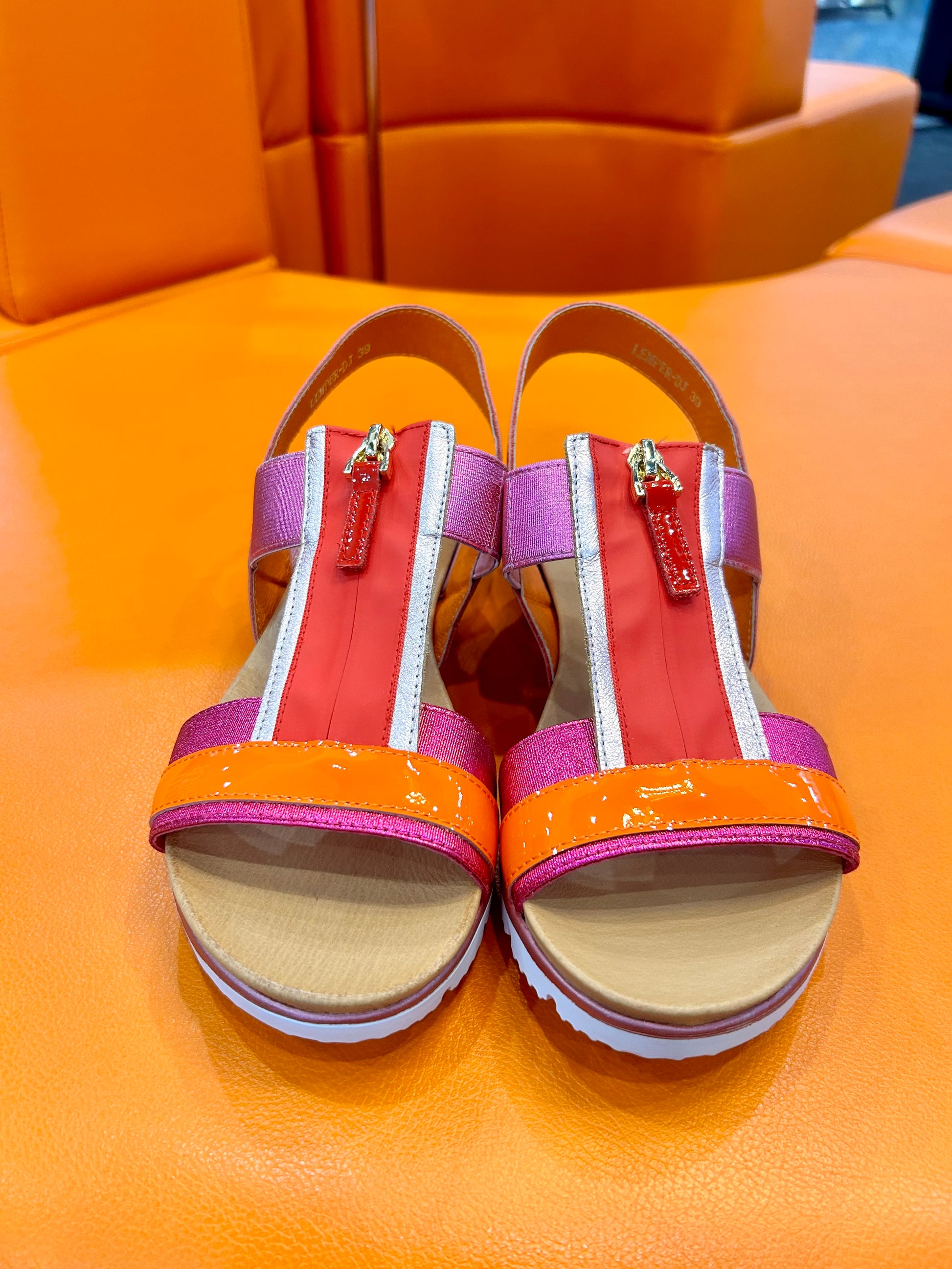 Lemper by Django and Juliette is a striking zip front sandal that showcases a vibrant pink and orange combination, crafted from a mix of patent and metallic leathers. The convenient zip-up front adds a modern touch, also making them super easy to zip in and out of. We just love the flexible cleated sole as it ensures exceptional comfort for all-day wear.