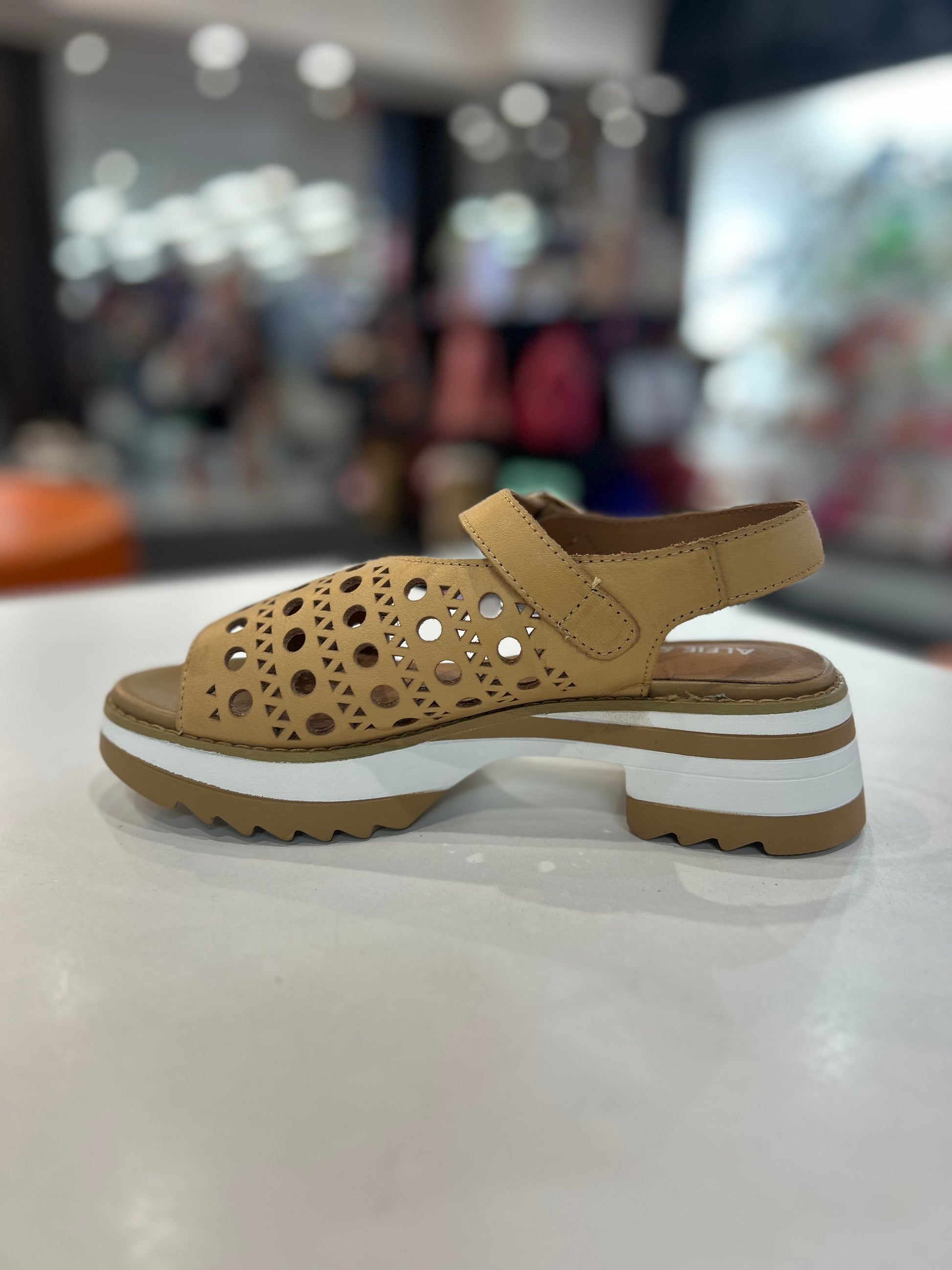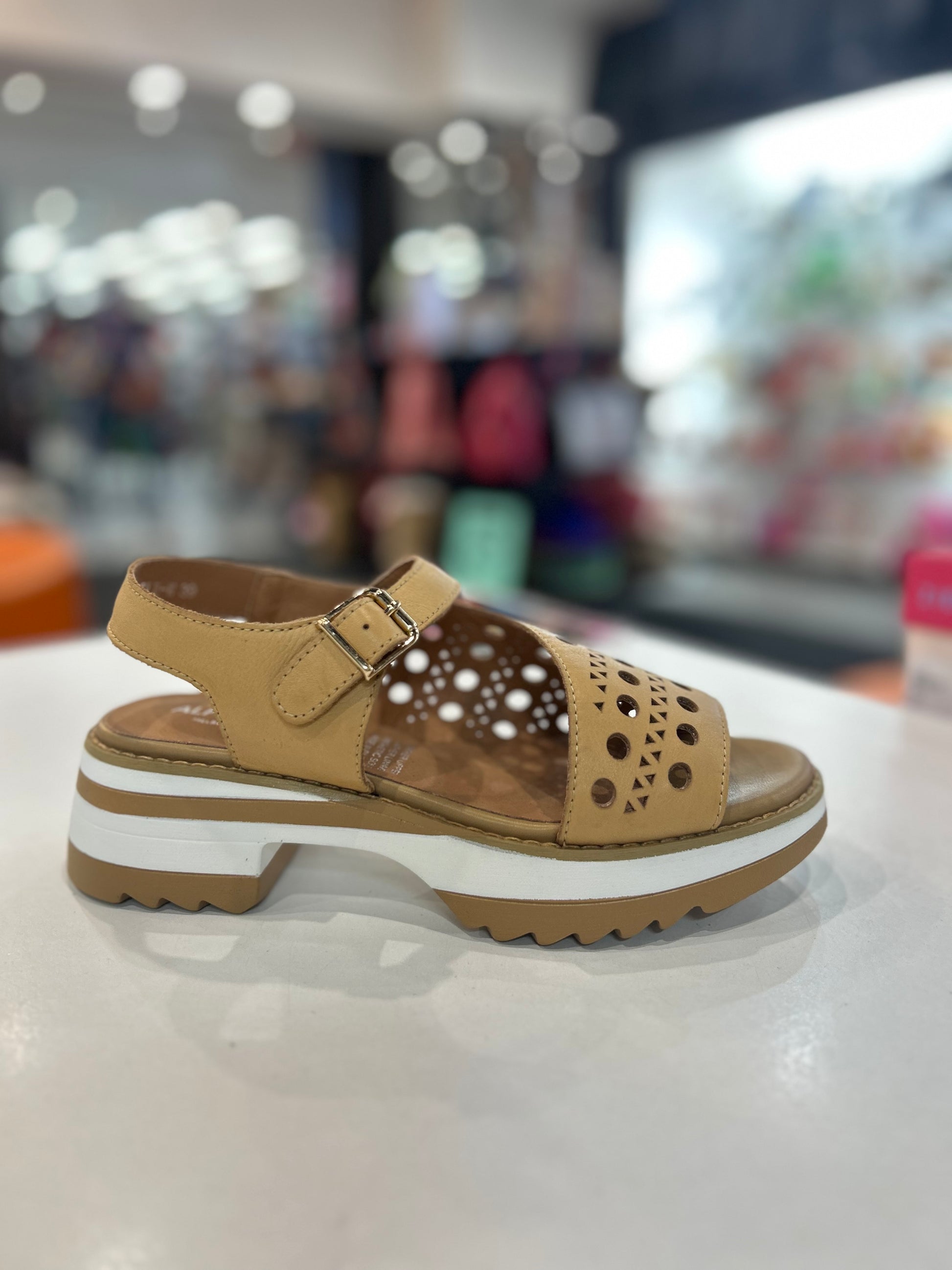 These stylish sandals from Alfie & Evie are perfect for any adventure. Featuring a perforated leather upper, an adjustable buckle strap, and a trendy striped sole, they combine fashion and function effortlessly.