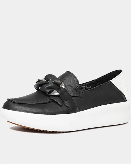 A slight wedged sneaker sole that combines an extremely light weight man made sole with a rubber insert on the base for grip and comfort. Featuring a twin elastic slip-on loafer upper with trending interlaced leather chain trim. Bringing together our favourite camel leather and a removable memory foam arch support leather sock for comfort under foot.