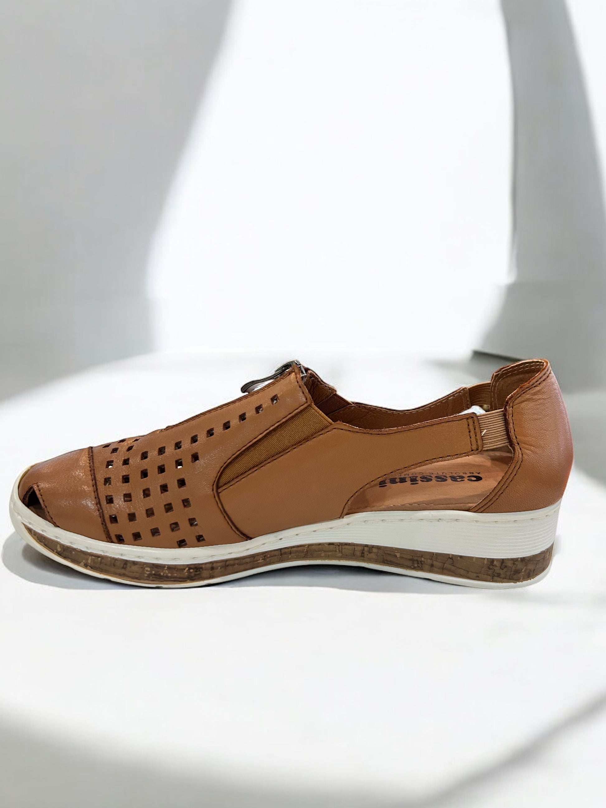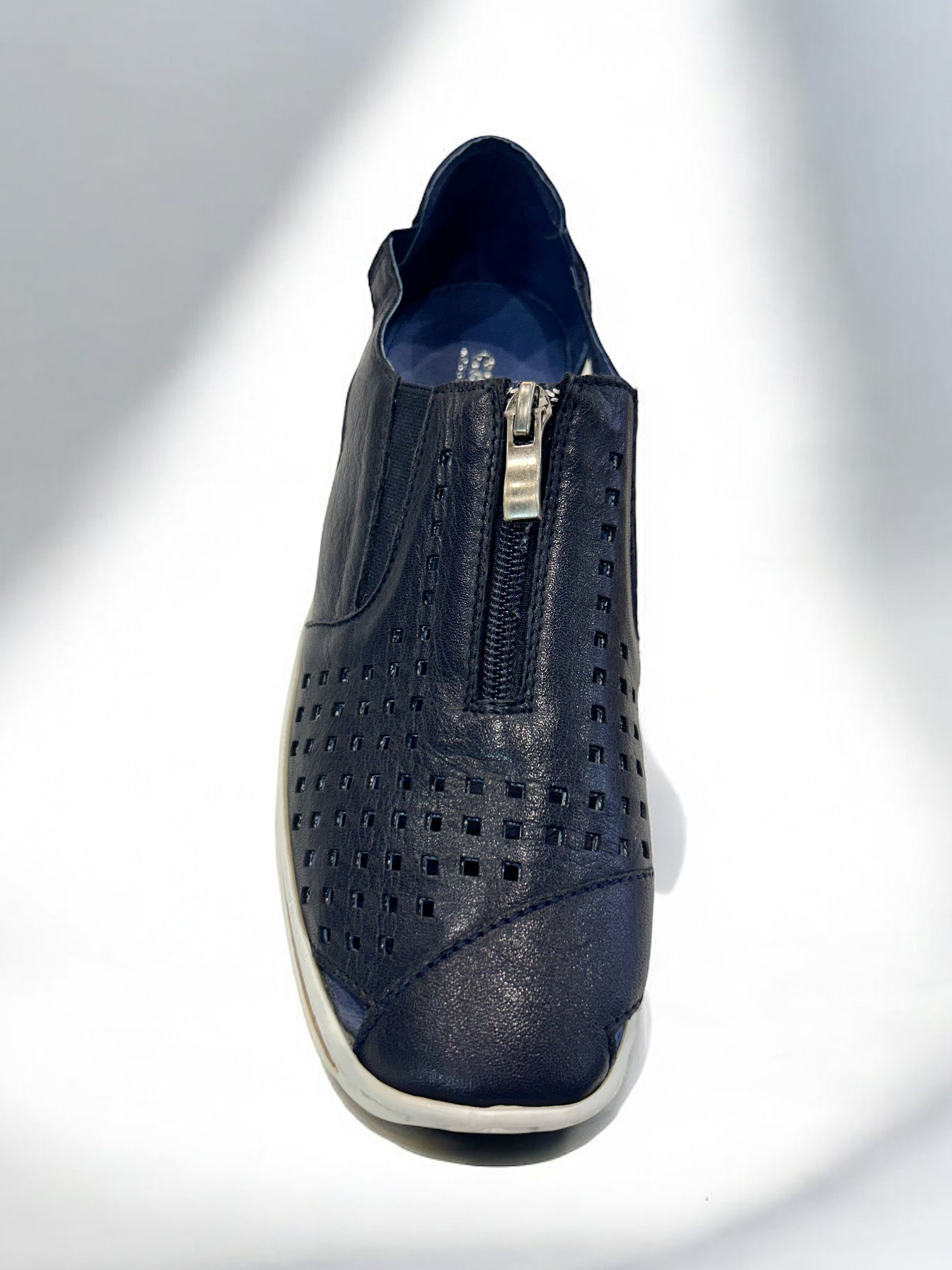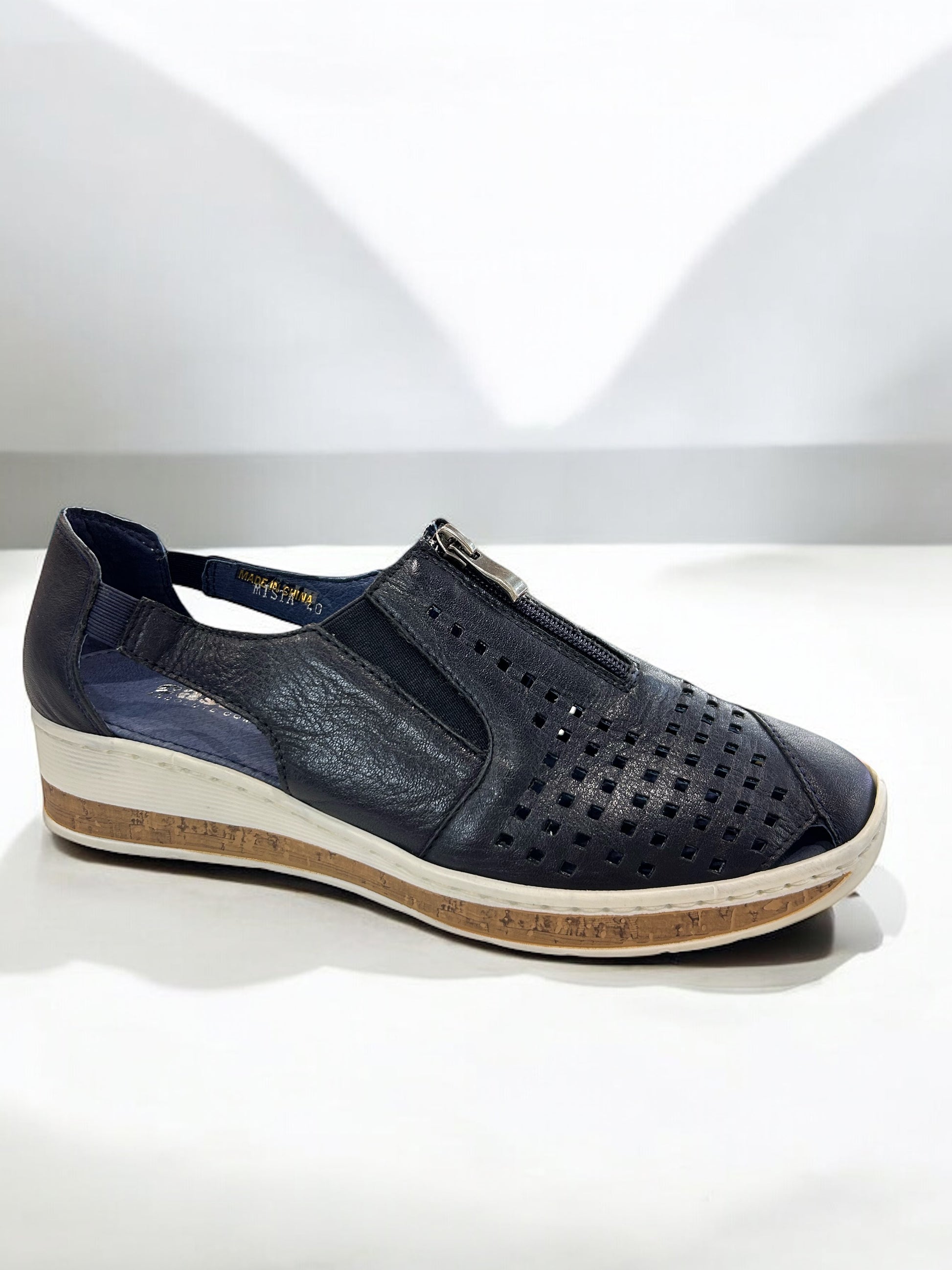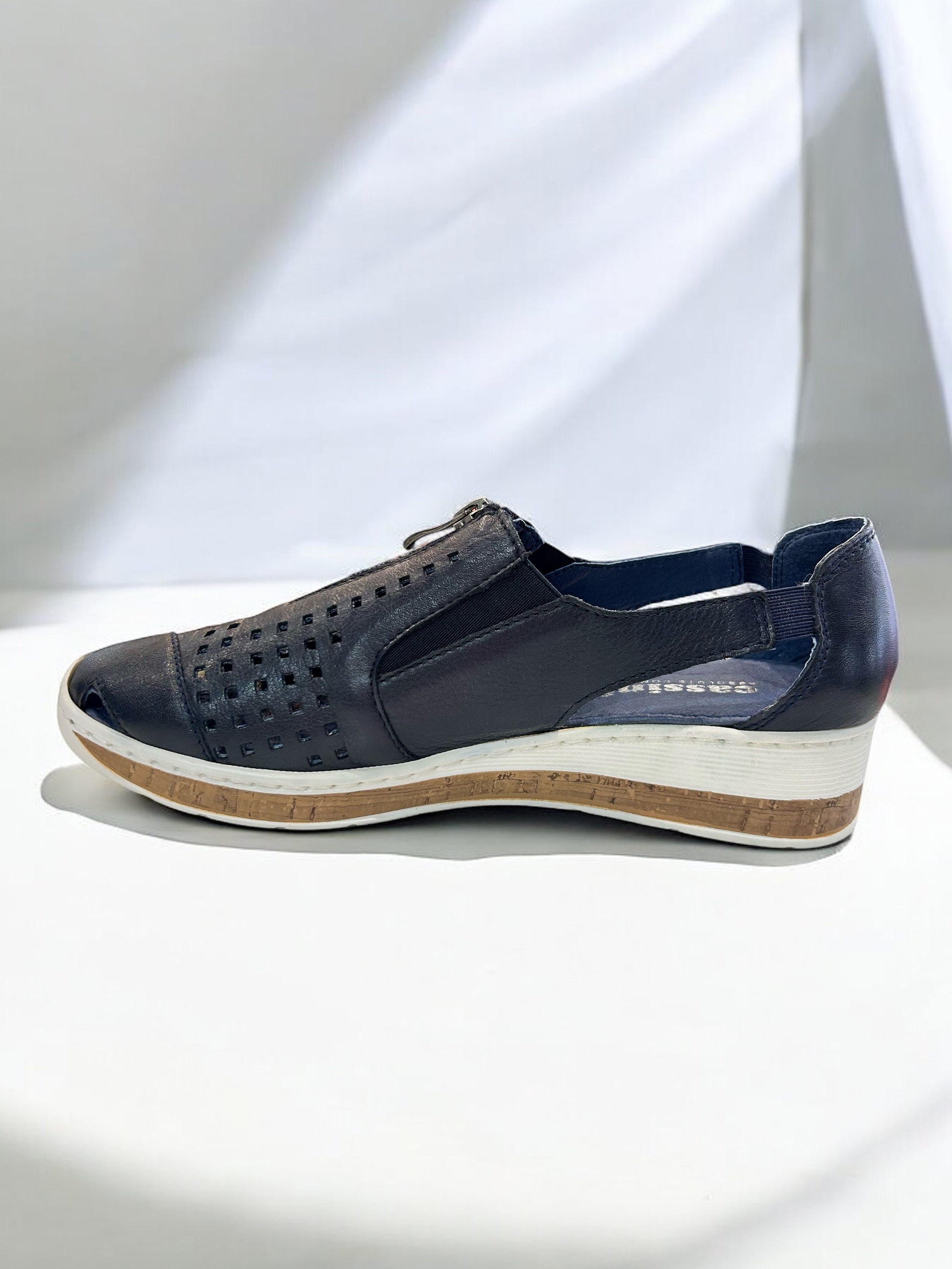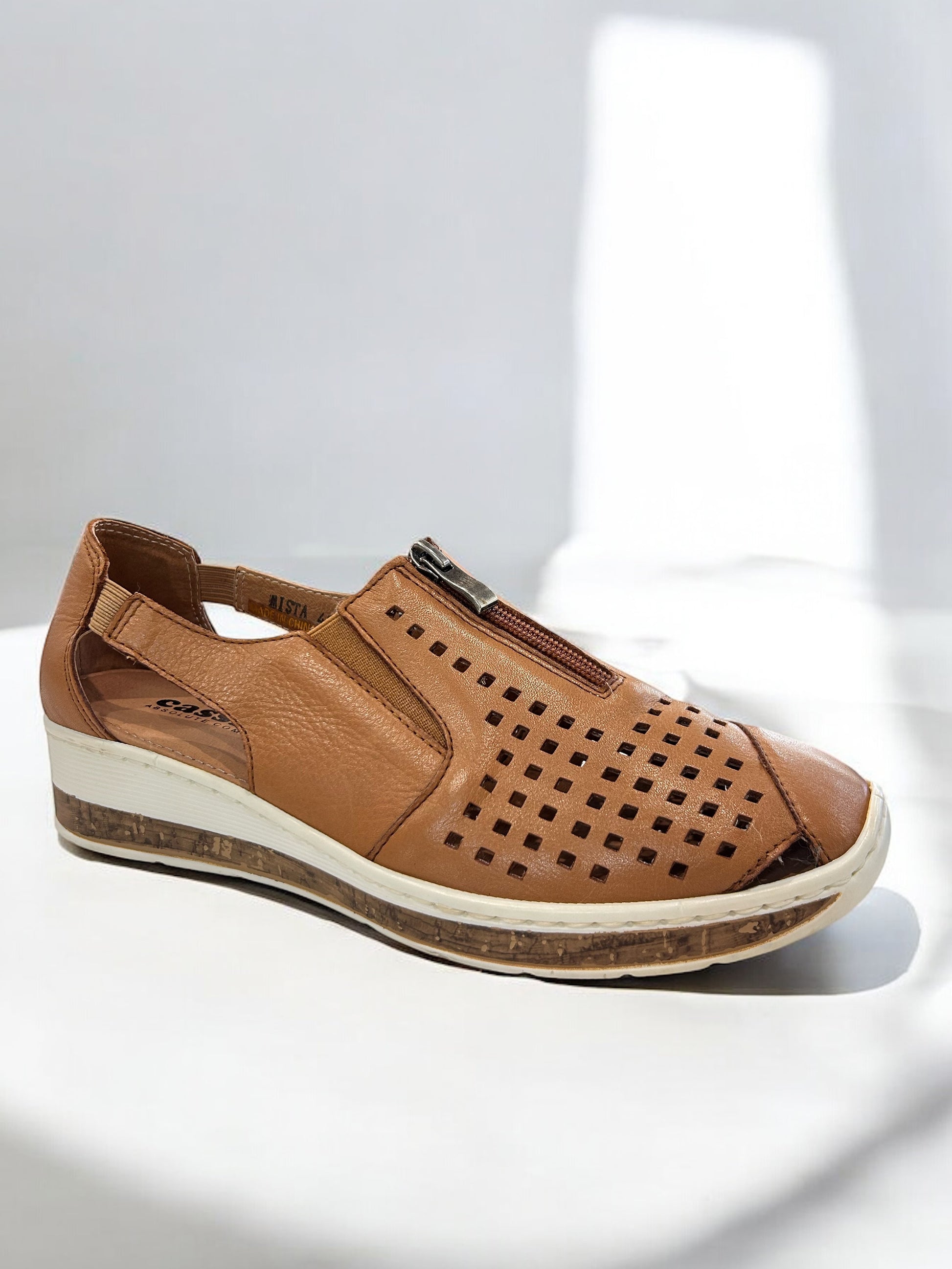 Mista shoes from Cassini offer the perfect blend of comfort, functionality and quality. Featuring a leather upper with perforation, a front zip for ease and a comfortable 4cm platform wedge, they're ideal for casual everyday wear or smarter occasions. The leather inner-sole and slip-on design add that extra touch of luxury.