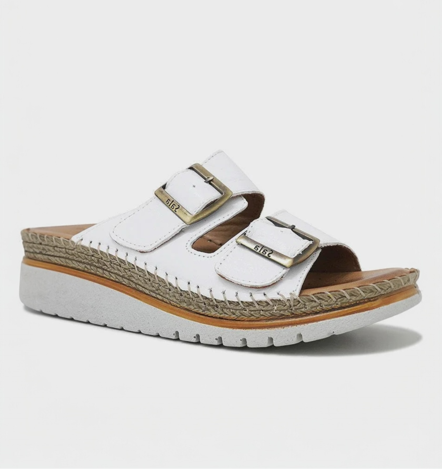 This slide offers perfect comfort and fit with a buckle-secured two-strap design.