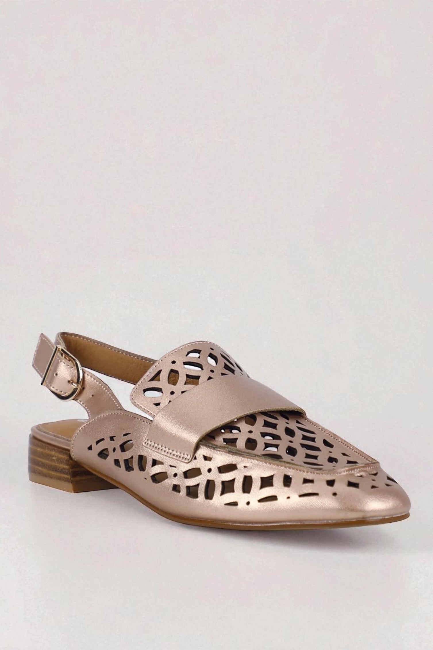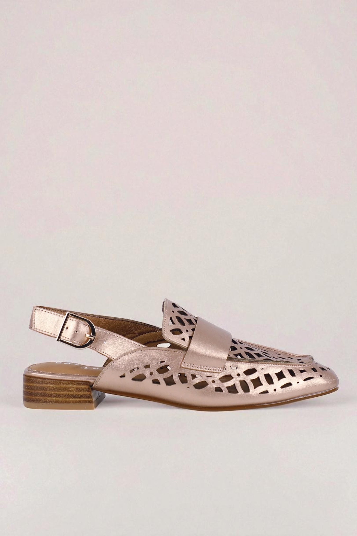 Prima in rose gold brings instant elegance with its laser-cut detailing and loafer-inspired design. An adjustable slingback strap and cushioned Luxe Support footbed keep it all-day wearable, while the metallic finish makes it the perfect standout for any outfit.