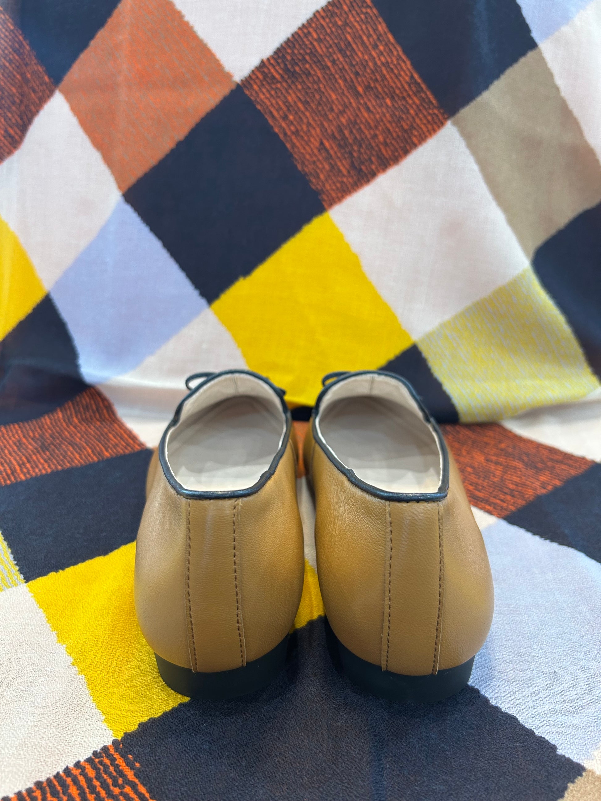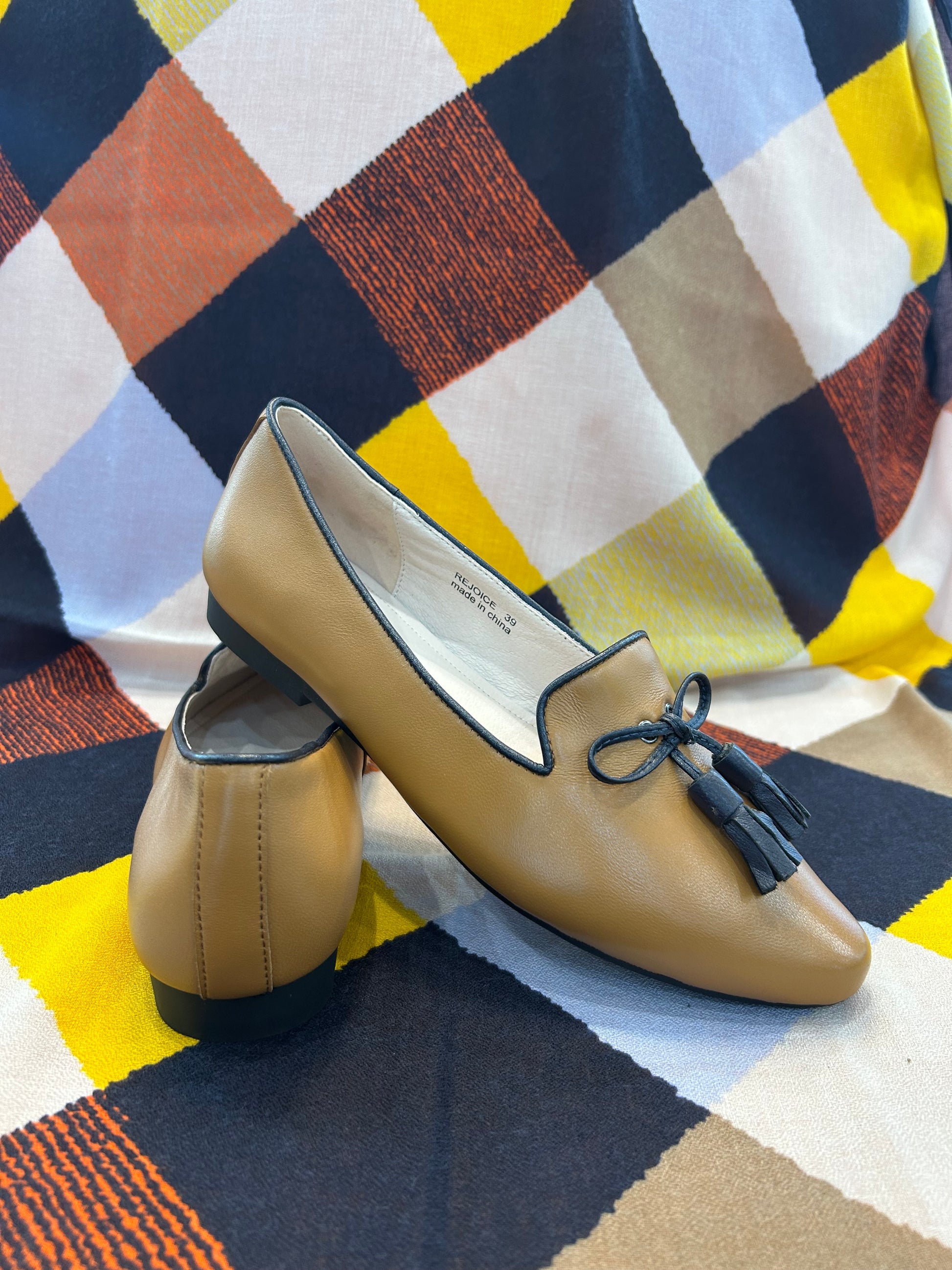 Emma Kate Rejoice is a charming tan flat with timeless appeal. Featuring a rich navy trim and a sweet matching bow, this shoe proves that navy and tan are always a winning combination. The elegant almond toe shape adds a refined finish, while the classic colour palette makes it endlessly versatile—perfect for pairing with everything from jeans to dresses.