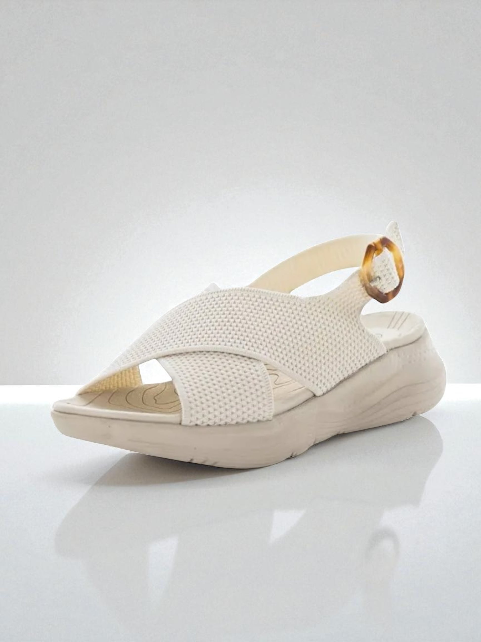 Wilde Saime is all about cool comfort with its waffle cotton crossover straps and slingback style. An elasticised buckle gives the perfect fit, while the cushioned insole and lightweight sole keep every step easy. Finished on a 45mm lift – just enough height, all-day wearable.