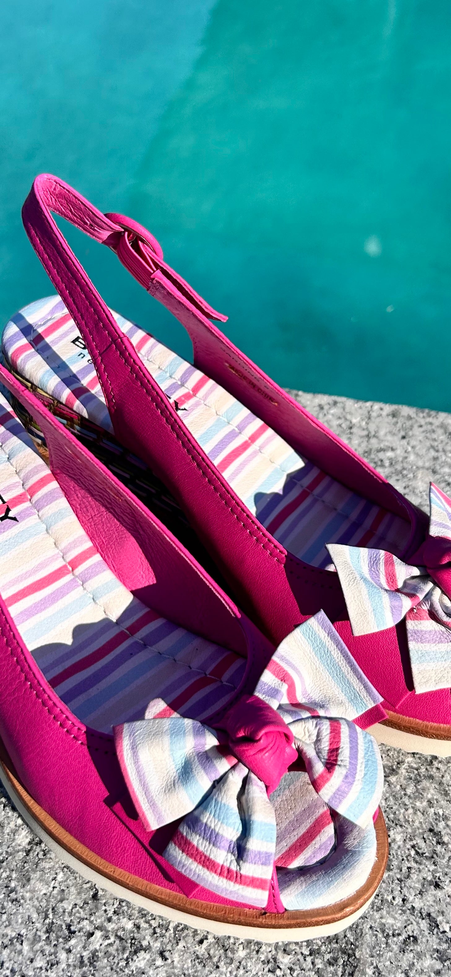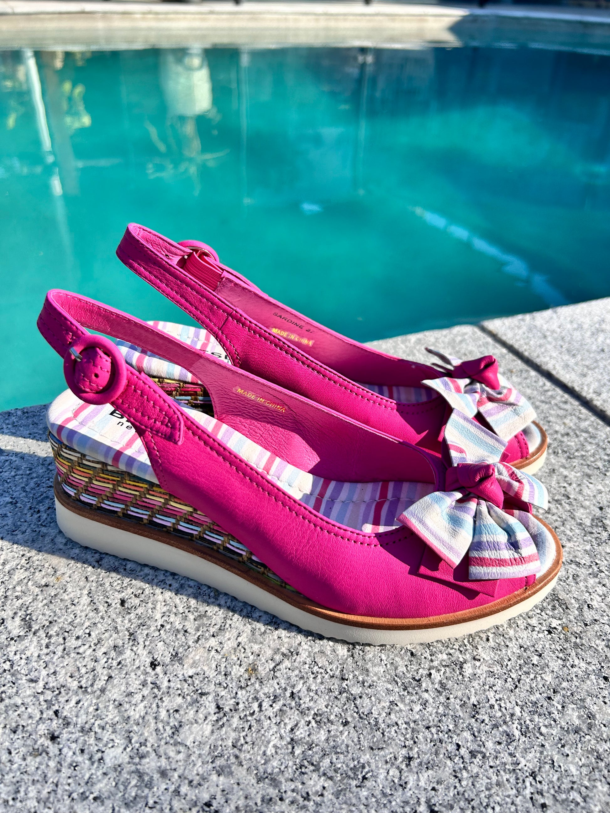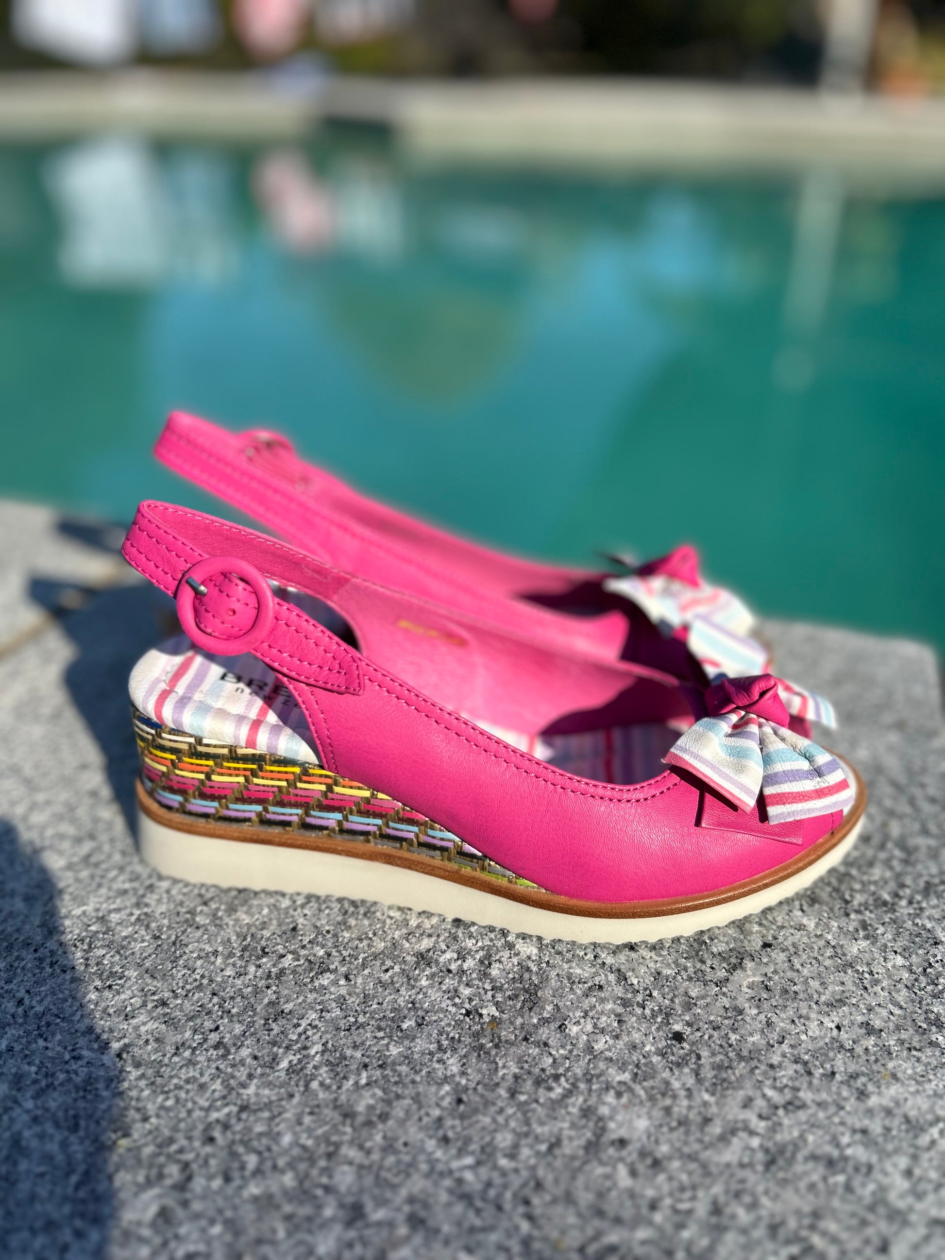 Meet Bresley Sardine – this pink slingback wedge is next-level summer cool. The sweet bow and multicolour woven trim give it a little extra something, and the comfy wedge makes it easy to wear all day. Perfect with dresses, skirts, or even jeans – this is one wedge you’ll actually want to live in.