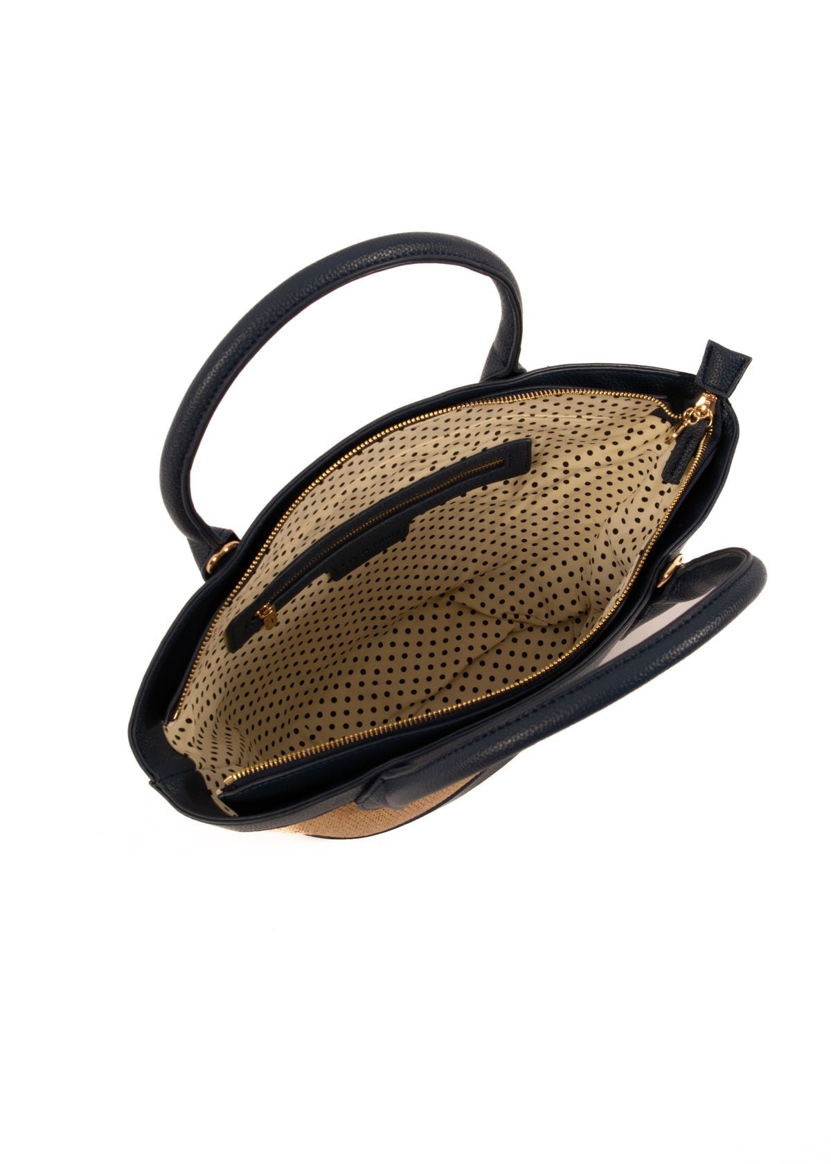 - Internal Lining: Cream & black spotted cotton canvas