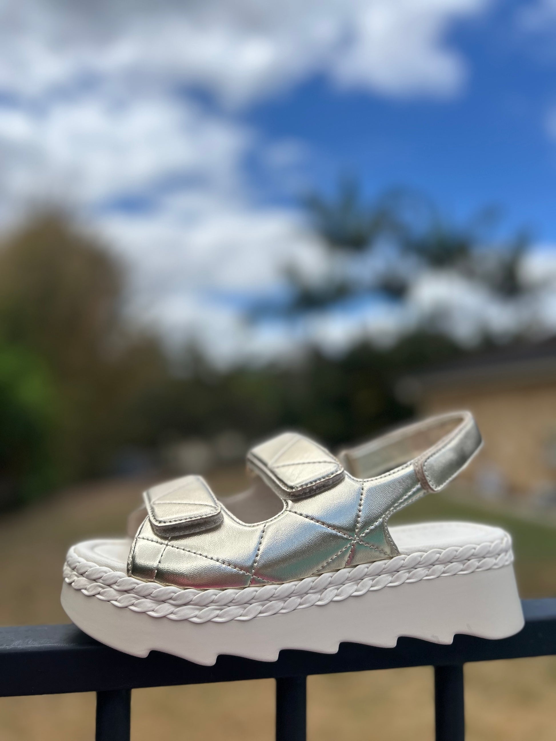 Now this is a situation worth stepping into! The Alfie & Evie Situation Platform Sandal brings together on-trend style and all-day comfort in the dreamiest way. Designed in luxe quilted gold leather, it’s a sandal that shines from weekday wear to weekend adventures.