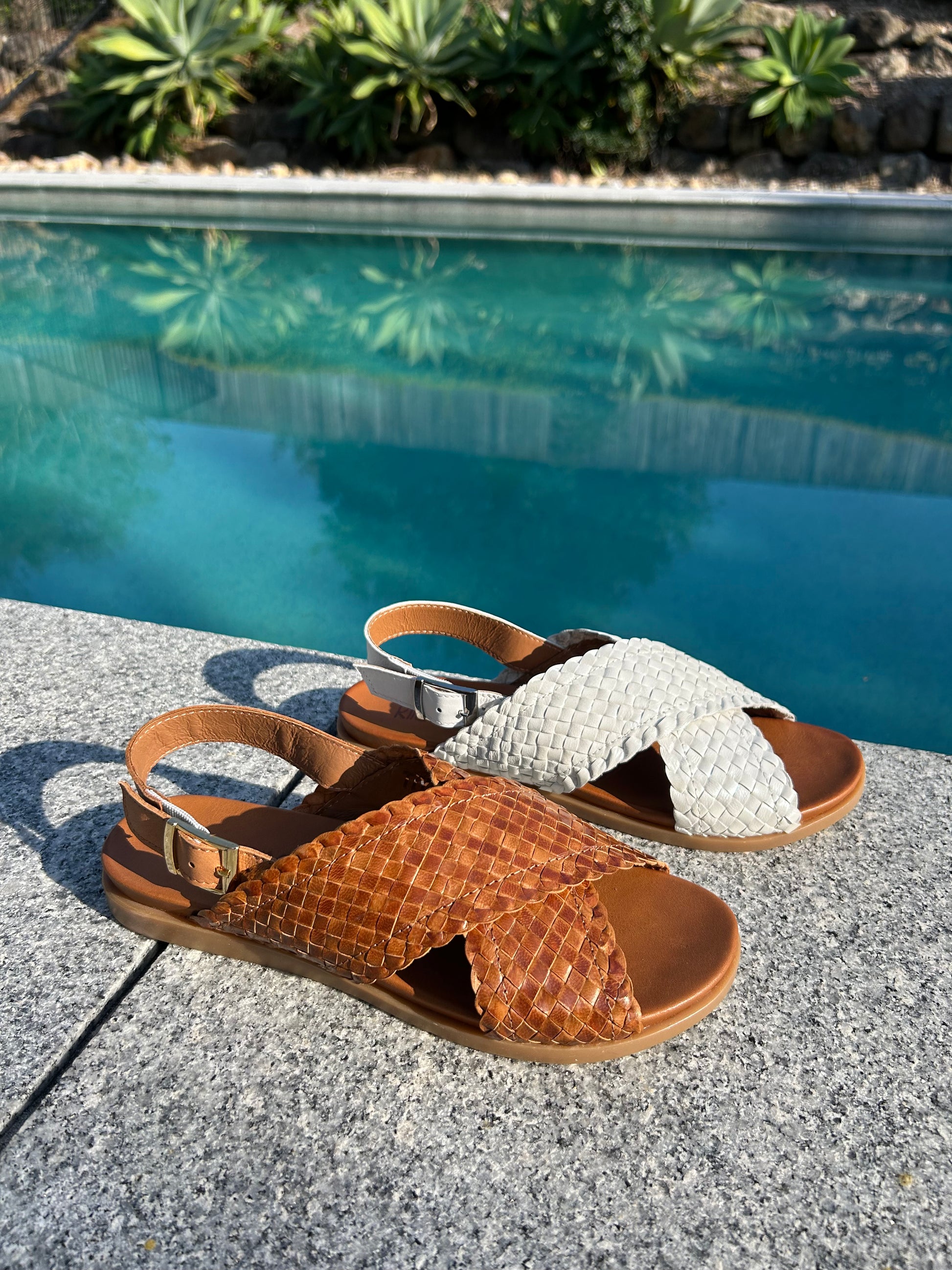 Taiyah by Rilassare is crafted from beautifully soft woven leather that feels as good as it looks. The flattering V-shape across the instep elongates the leg line, creating a graceful, feminine look. Available in two timeless shades — a lovely tan and a soft pearl — and expertly made in Sofia, Bulgaria.