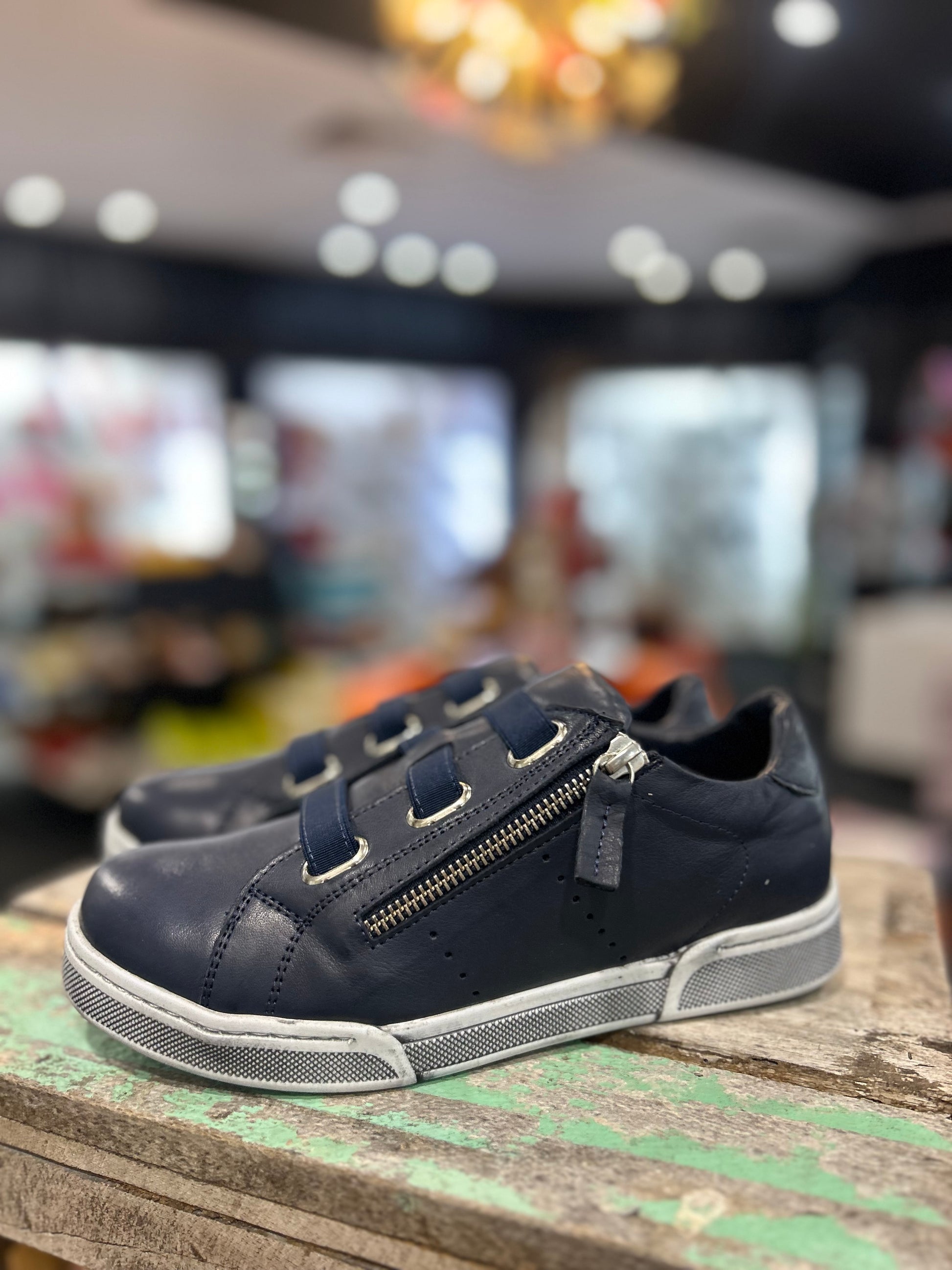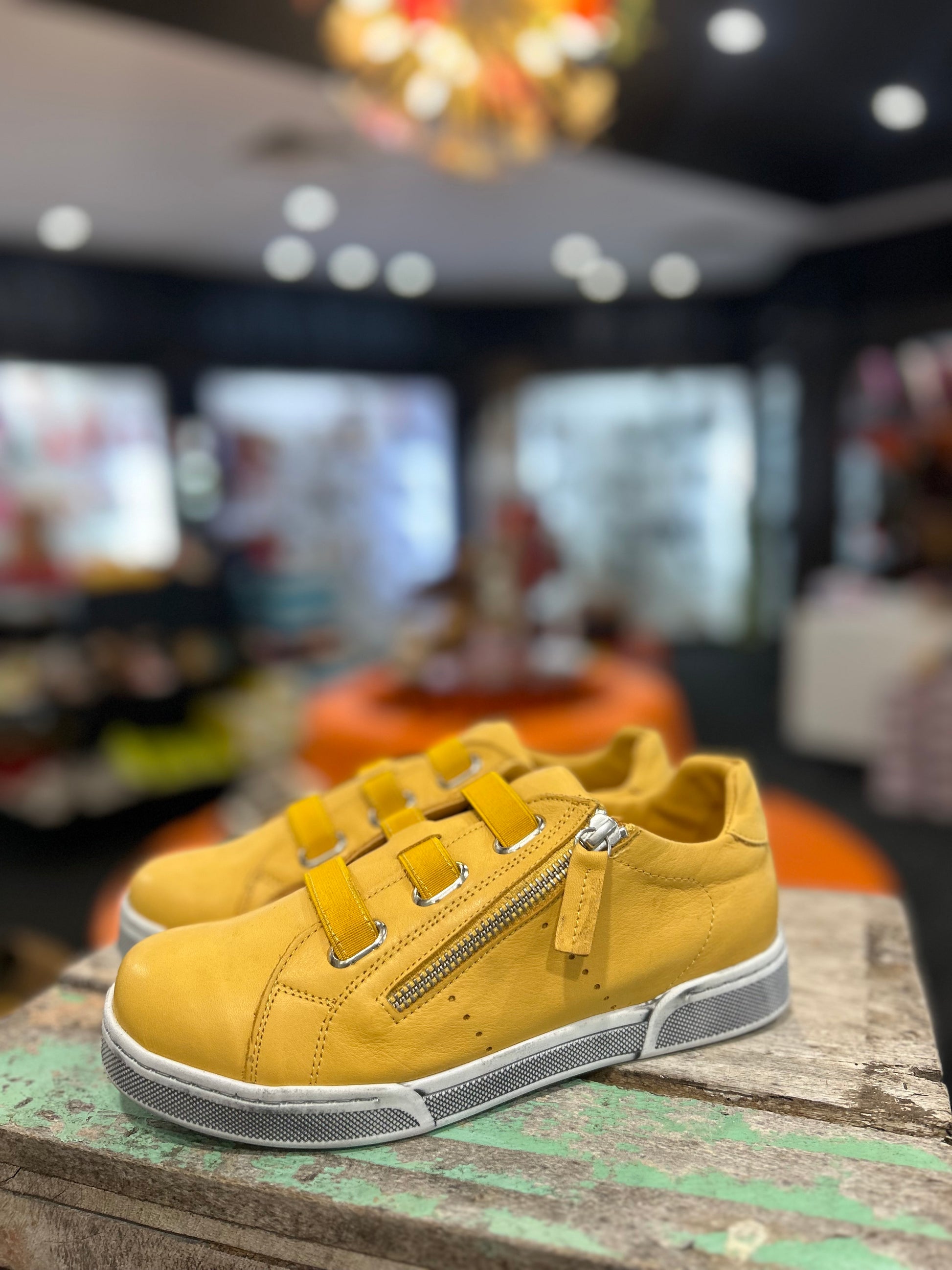 Introducing TALEA by RILASSARE—a fab sneaker designed for all-day comfort. Made from luxurious buttery-soft leather, this shoe combines fashion and function with elastic laces that provide a flexible, secure fit and a convenient side zip for easy on and off. The patterned sole adds a unique touch, giving the sneaker a standout look with every step. Available in Mustard, Navy, and Black.